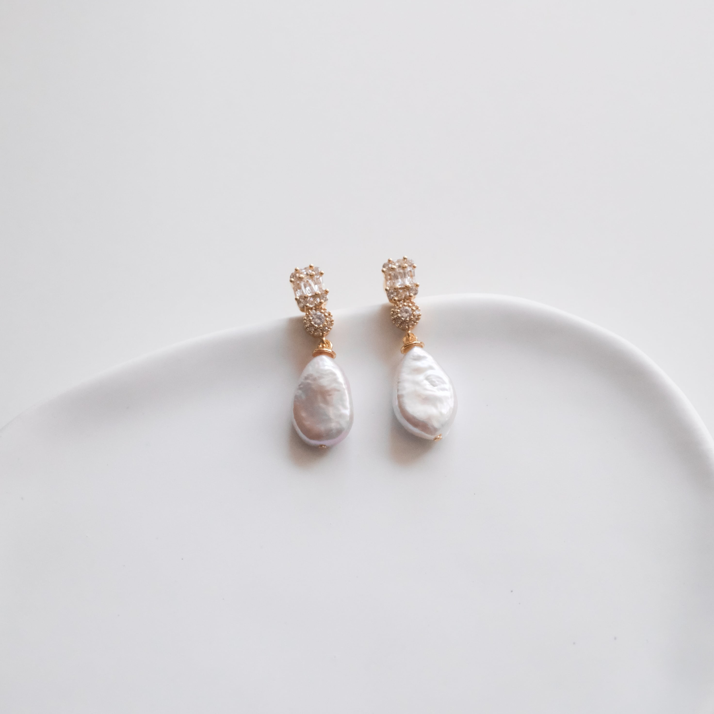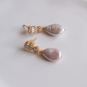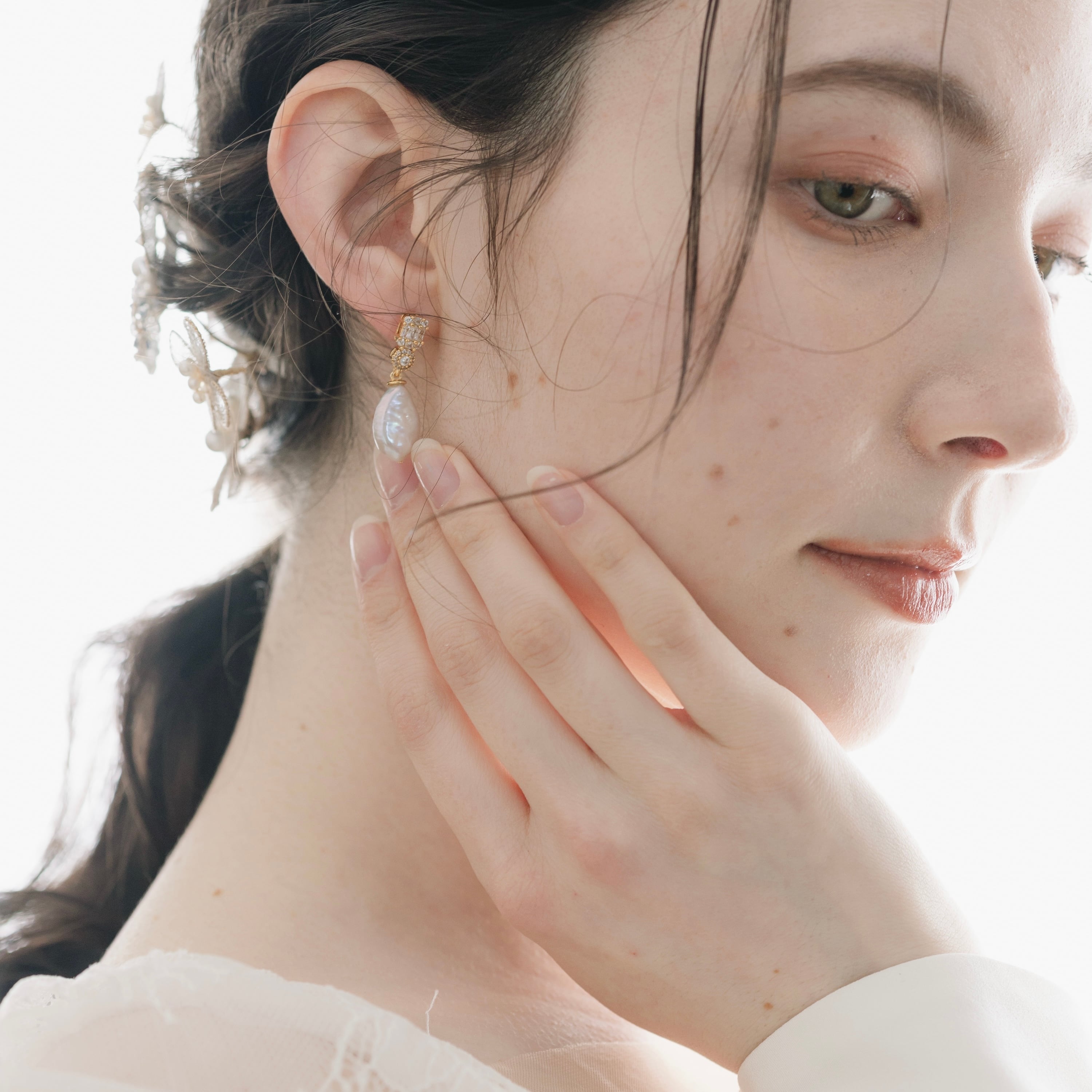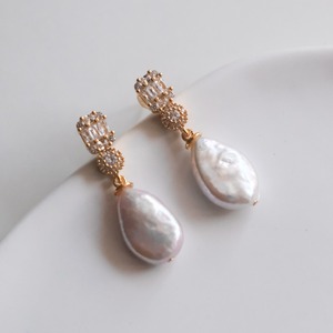 x14-pi85【ピアス】ビジュー バロック淡水パール ブライダル ゴールド