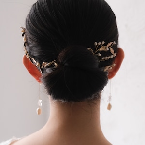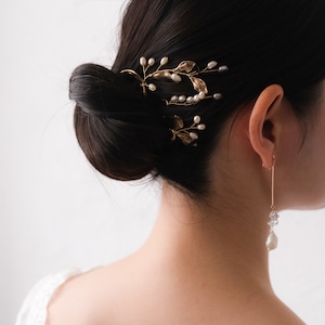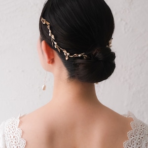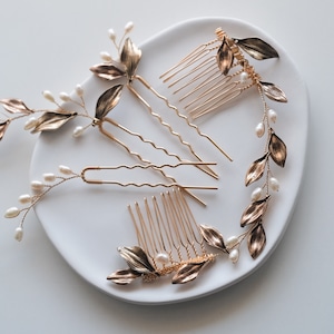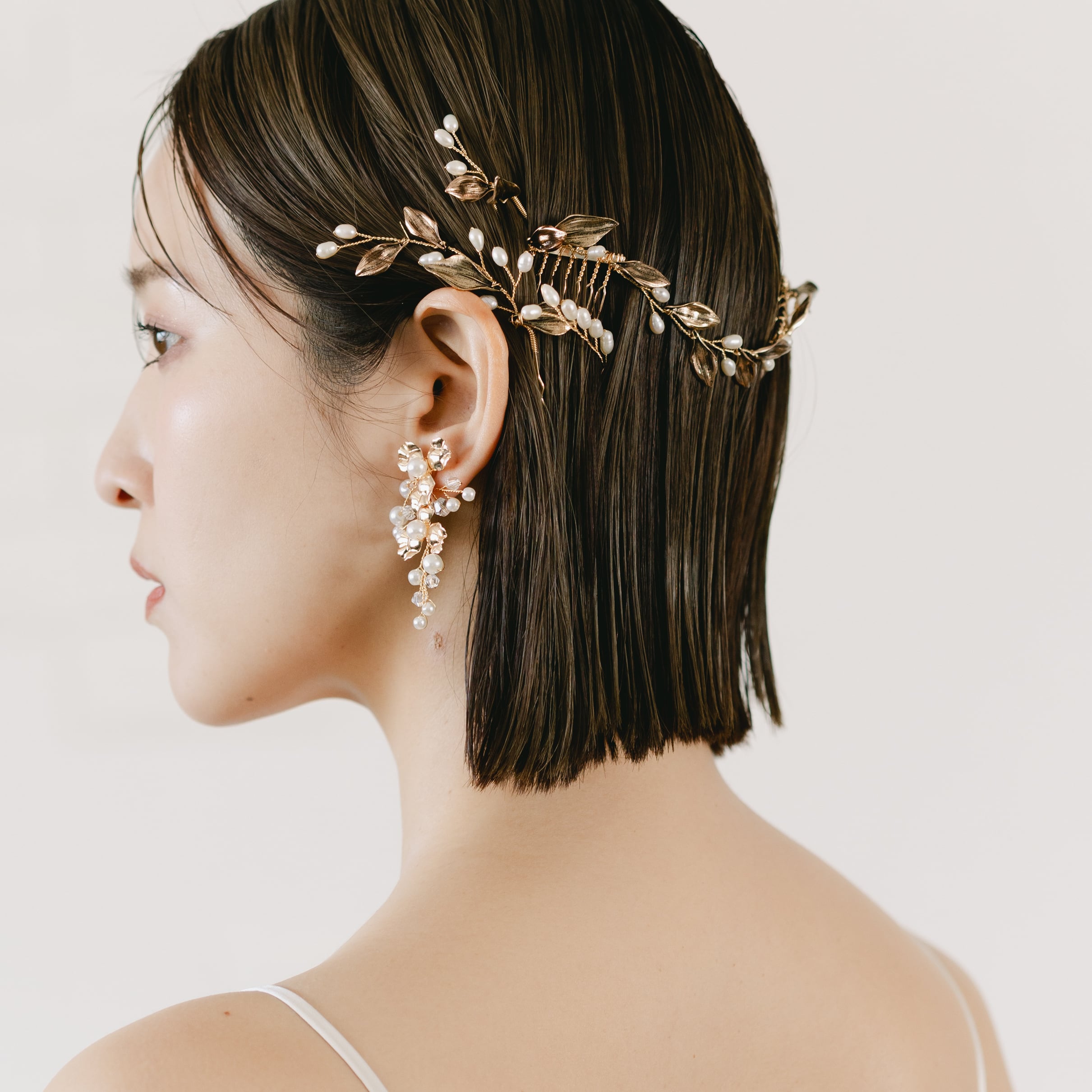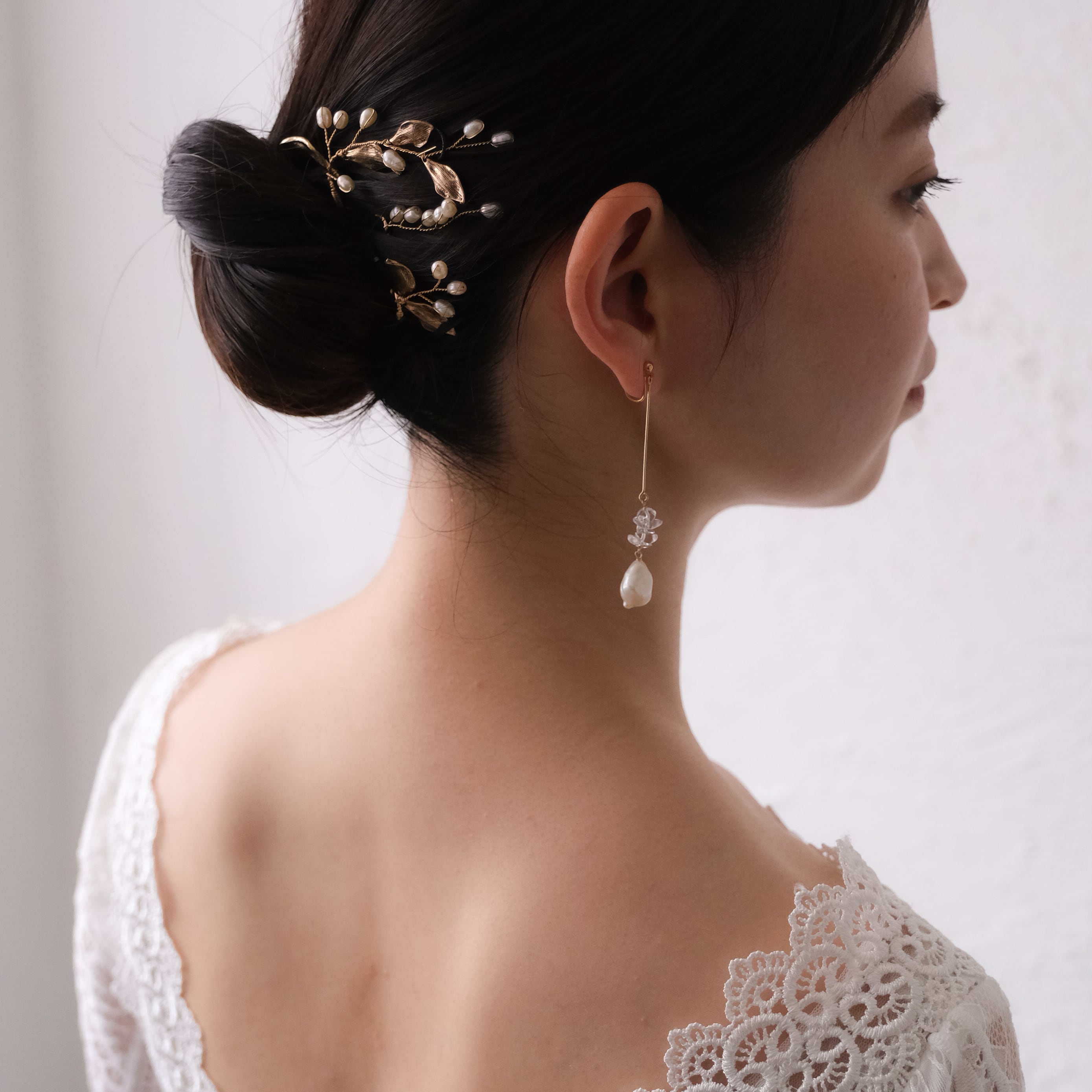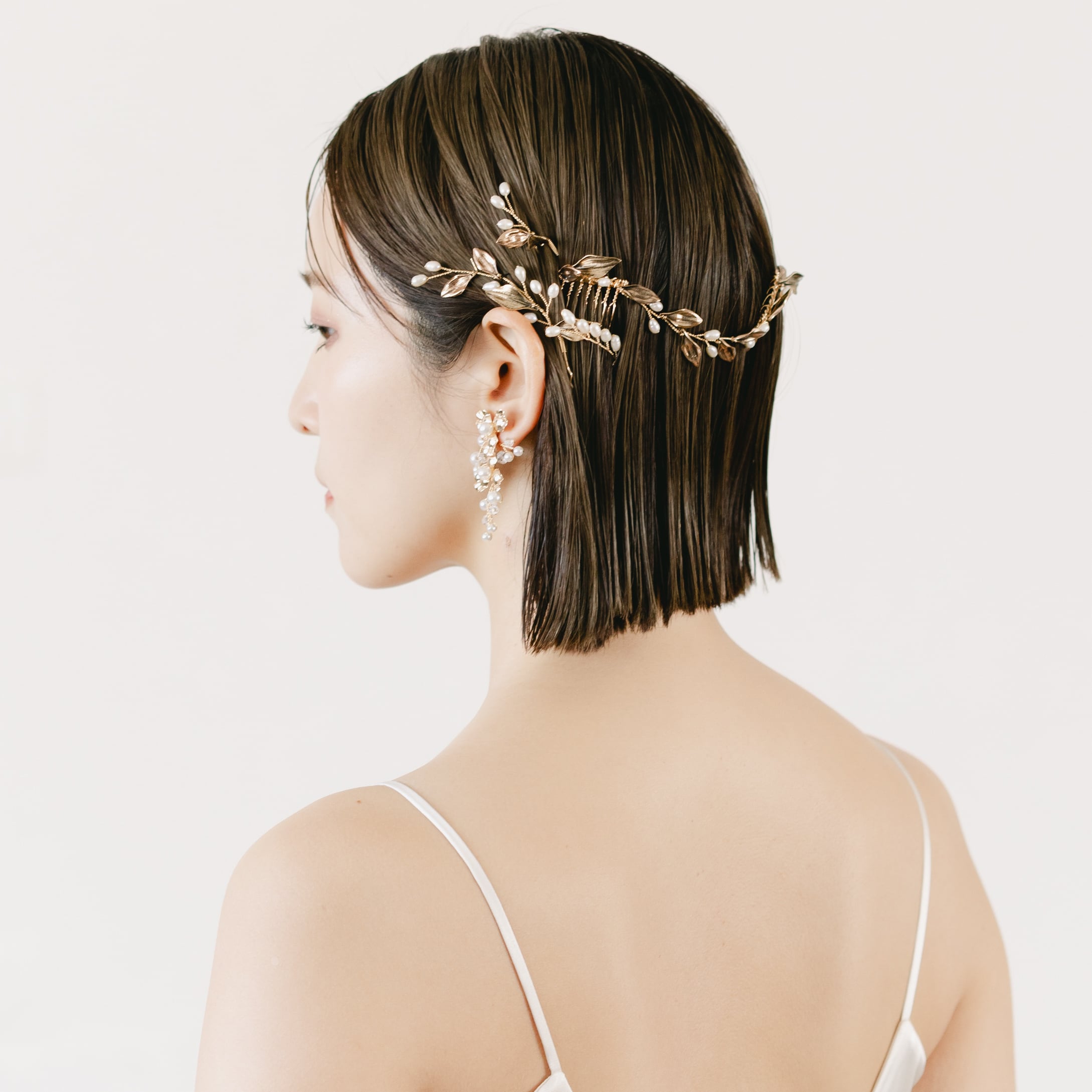 x21-hd142【ヘッドドレス】4点セット リーフ パール ナチュラル ブライダル 褐色ゴールド