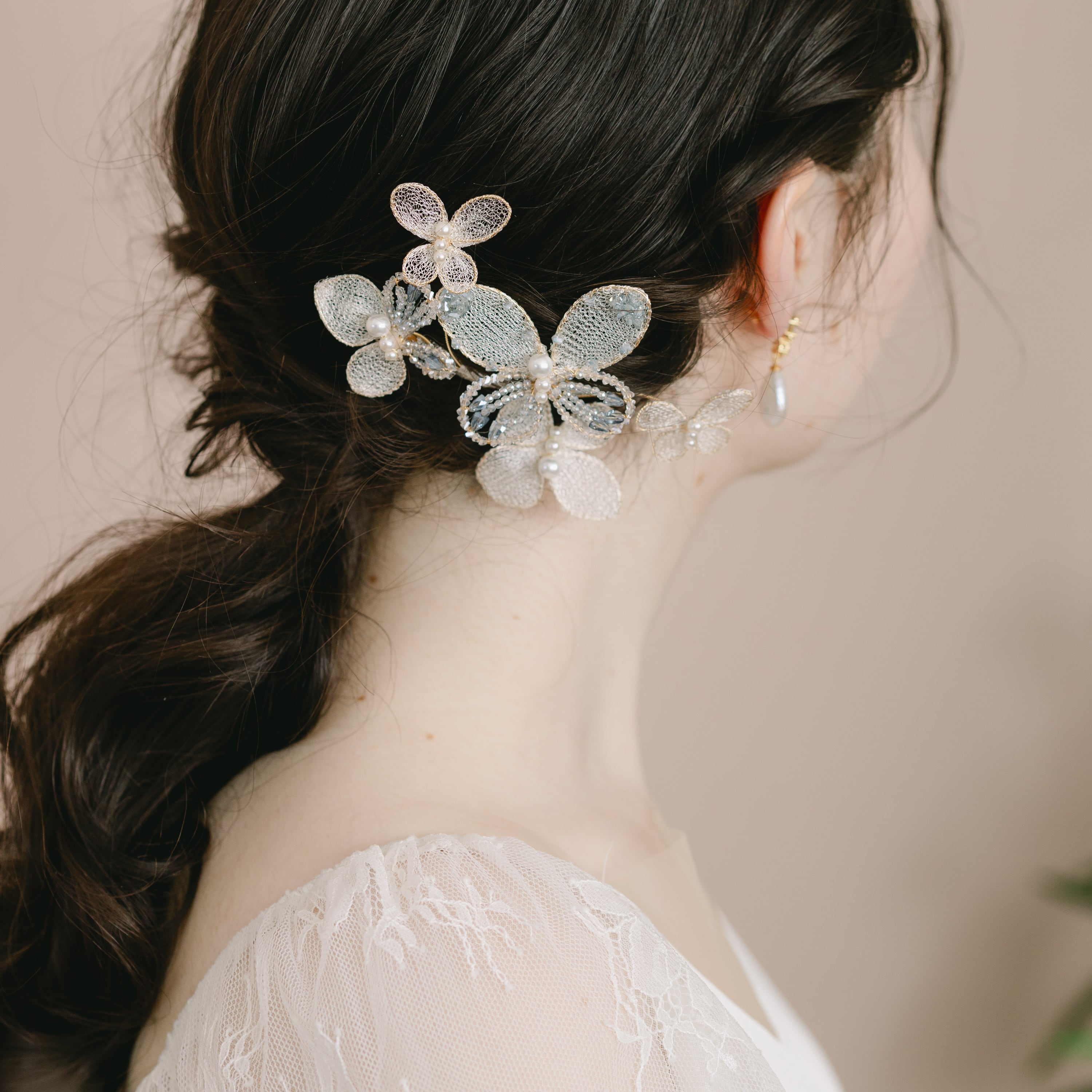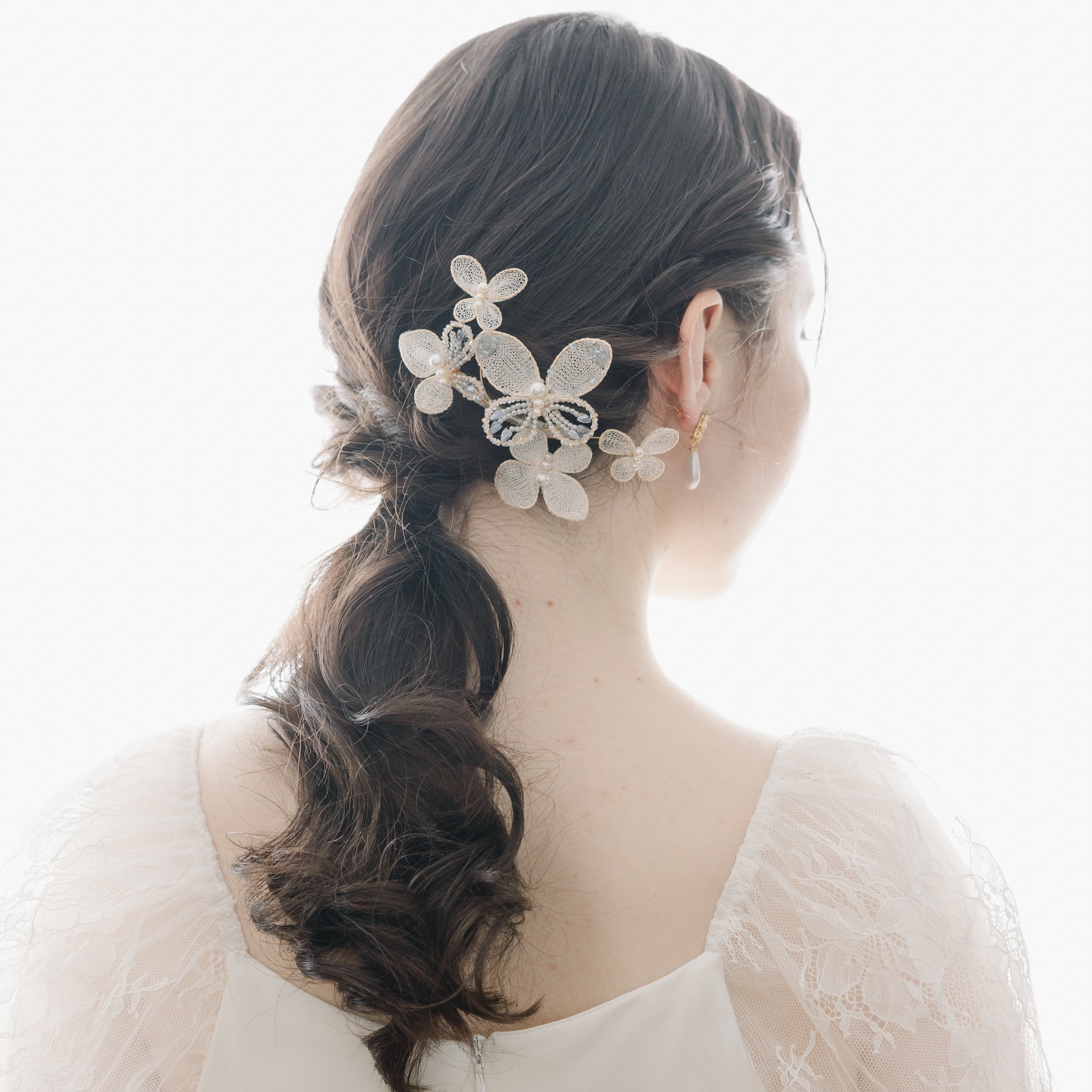 シニヨンやおろしヘア、編みこみスタイルなど、様々なアレンジに合わせてお使いいただけるので、特別な日の装いにぴったりなアイテムです。