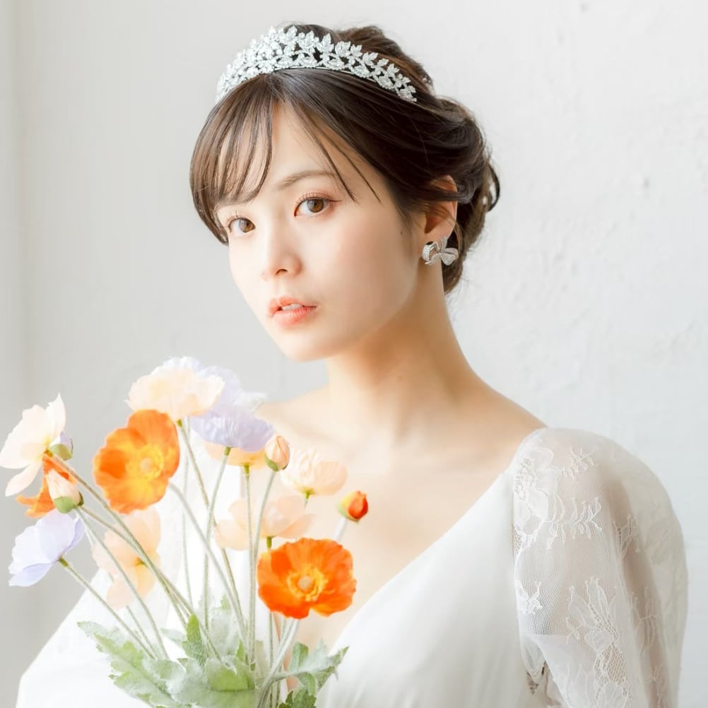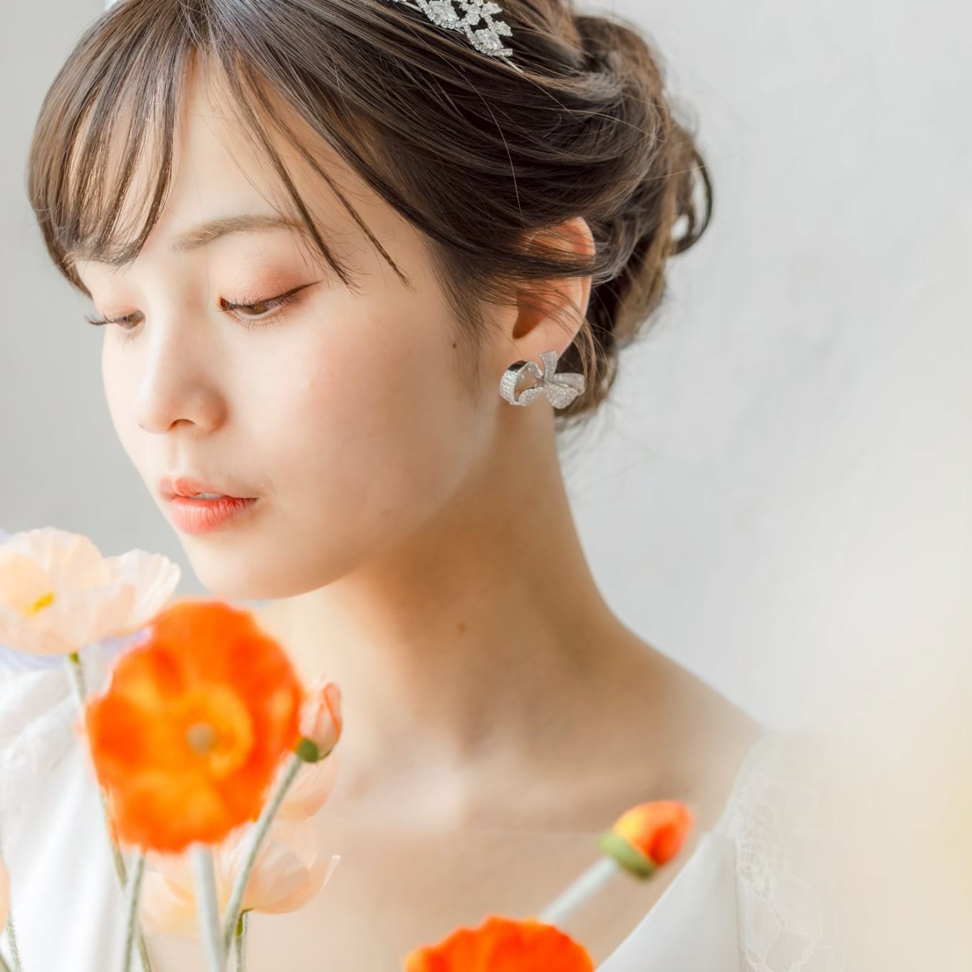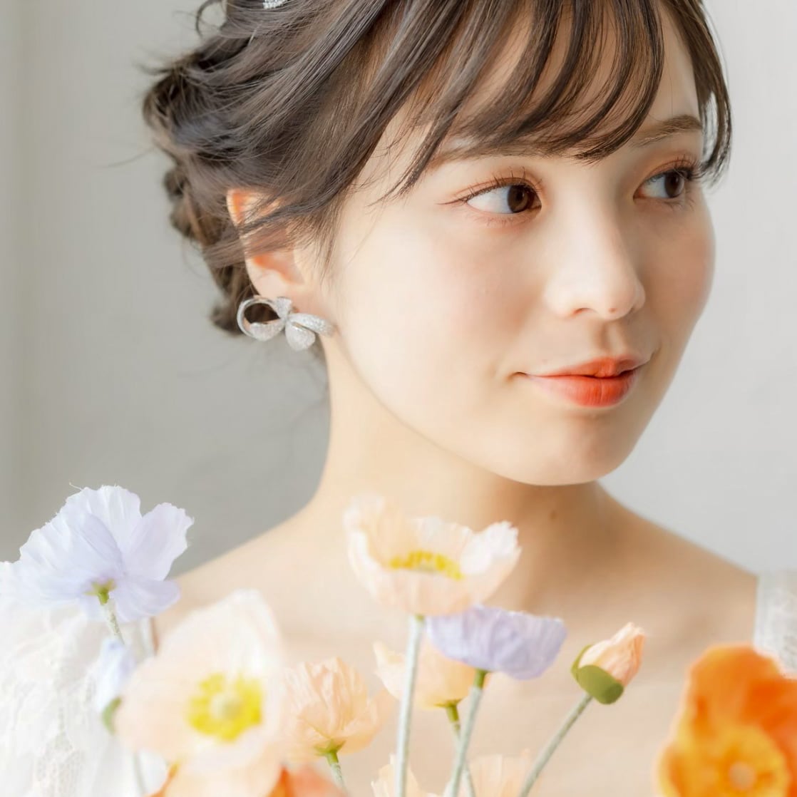結婚式の花嫁様はもちろん、前撮りや披露宴のお色直し、ゲストとしてのパーティーシーンにもぴったり。シンプルなドレスに合わせても、かわいらしさをプラスして上品にまとまります。