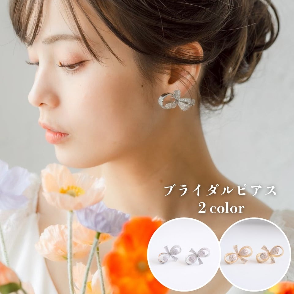 y2-pi88 y3-pi89【ピアス】ブライダル ピアス リボン シルバー ゴールド