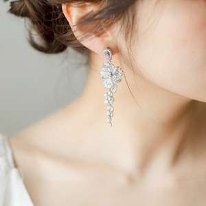 大ぶりで揺れるデザインのブライダルアクセサリーです。