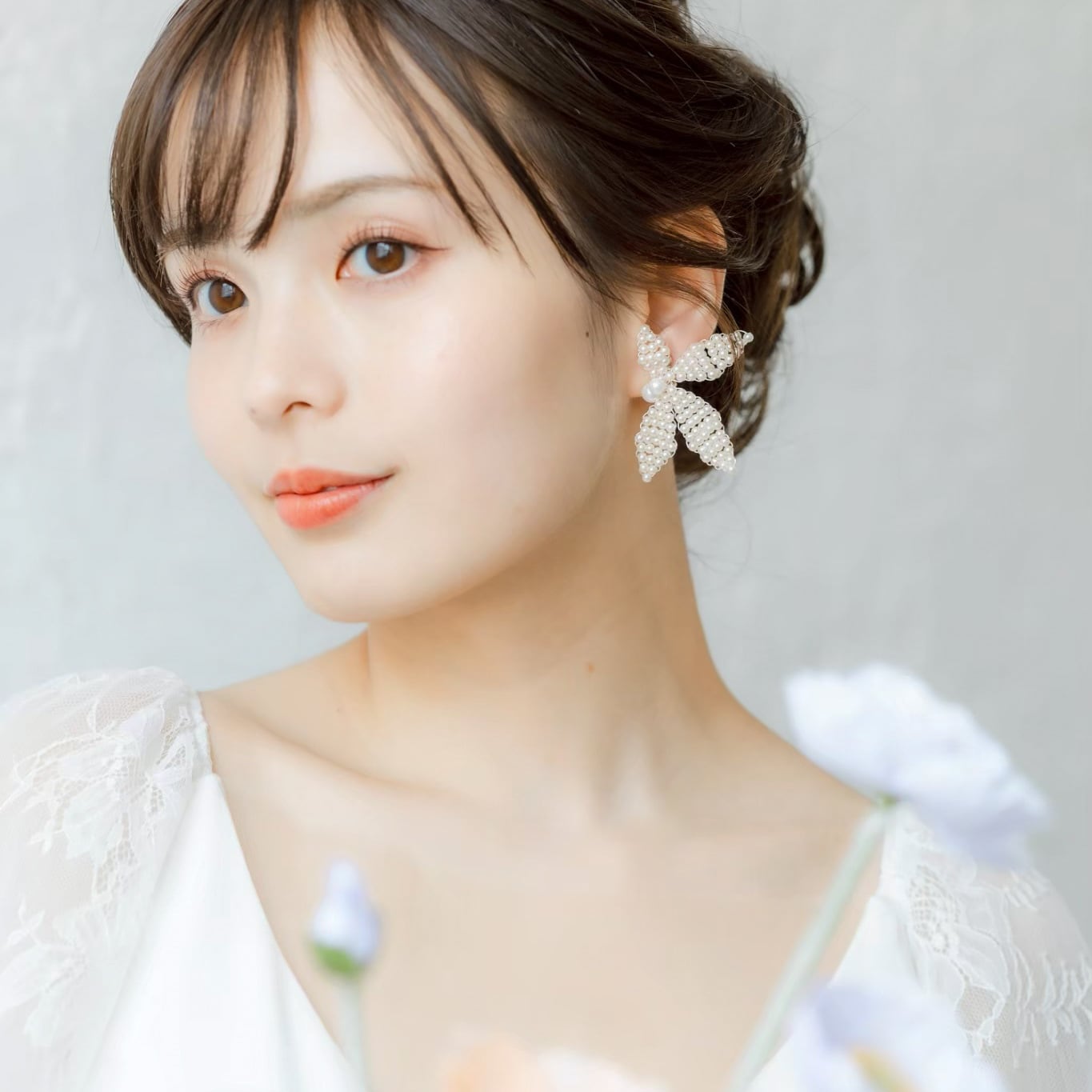 耳元で華やかに咲く花のように、結婚式や前撮りの特別な一日を彩ります。