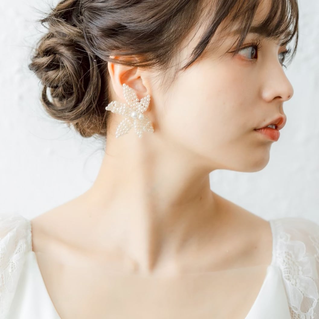 ナチュラルで可愛い花嫁スタイルを叶えるイヤリングです。