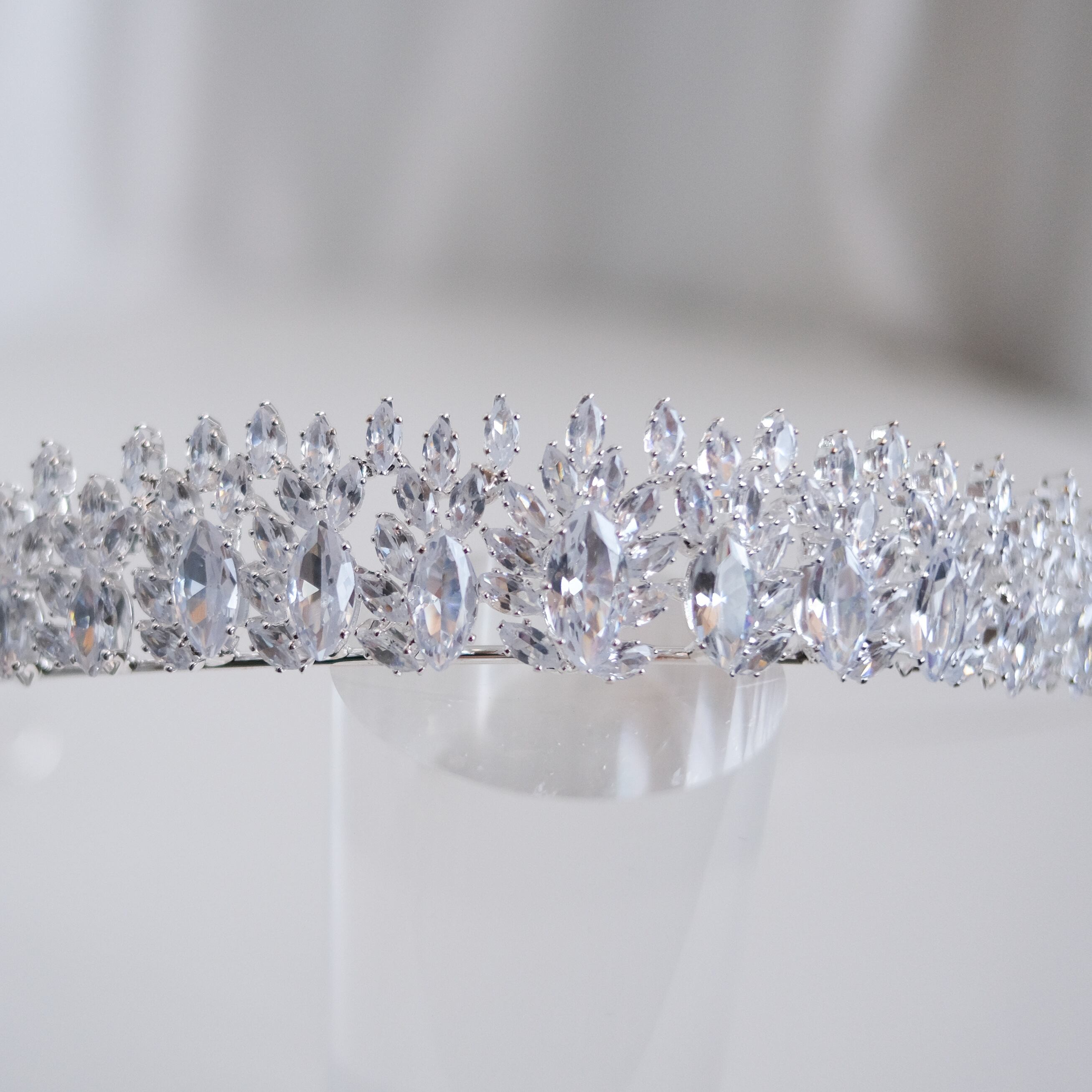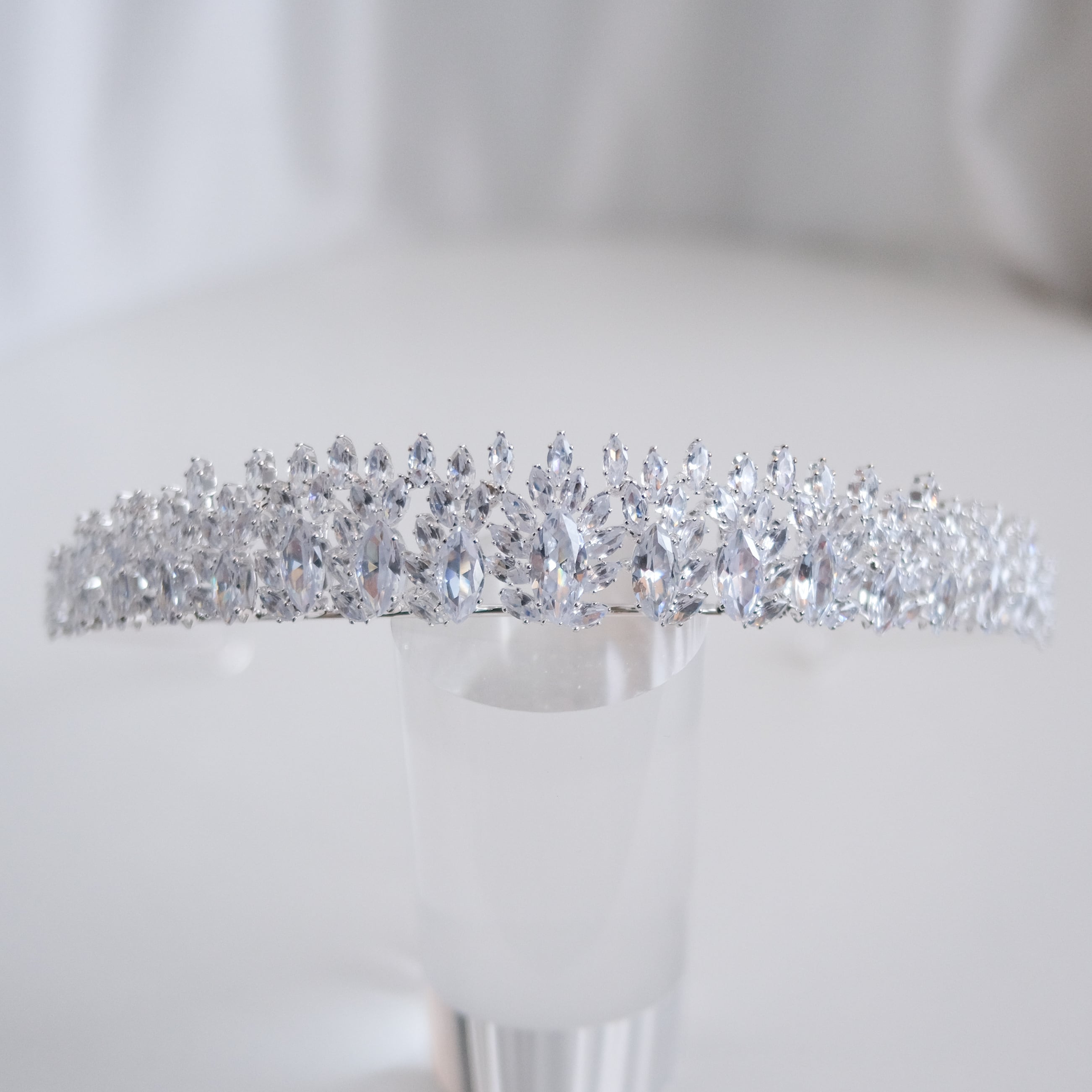 シンプルから華やかなドレスまで合わせやすい万能ティアラ