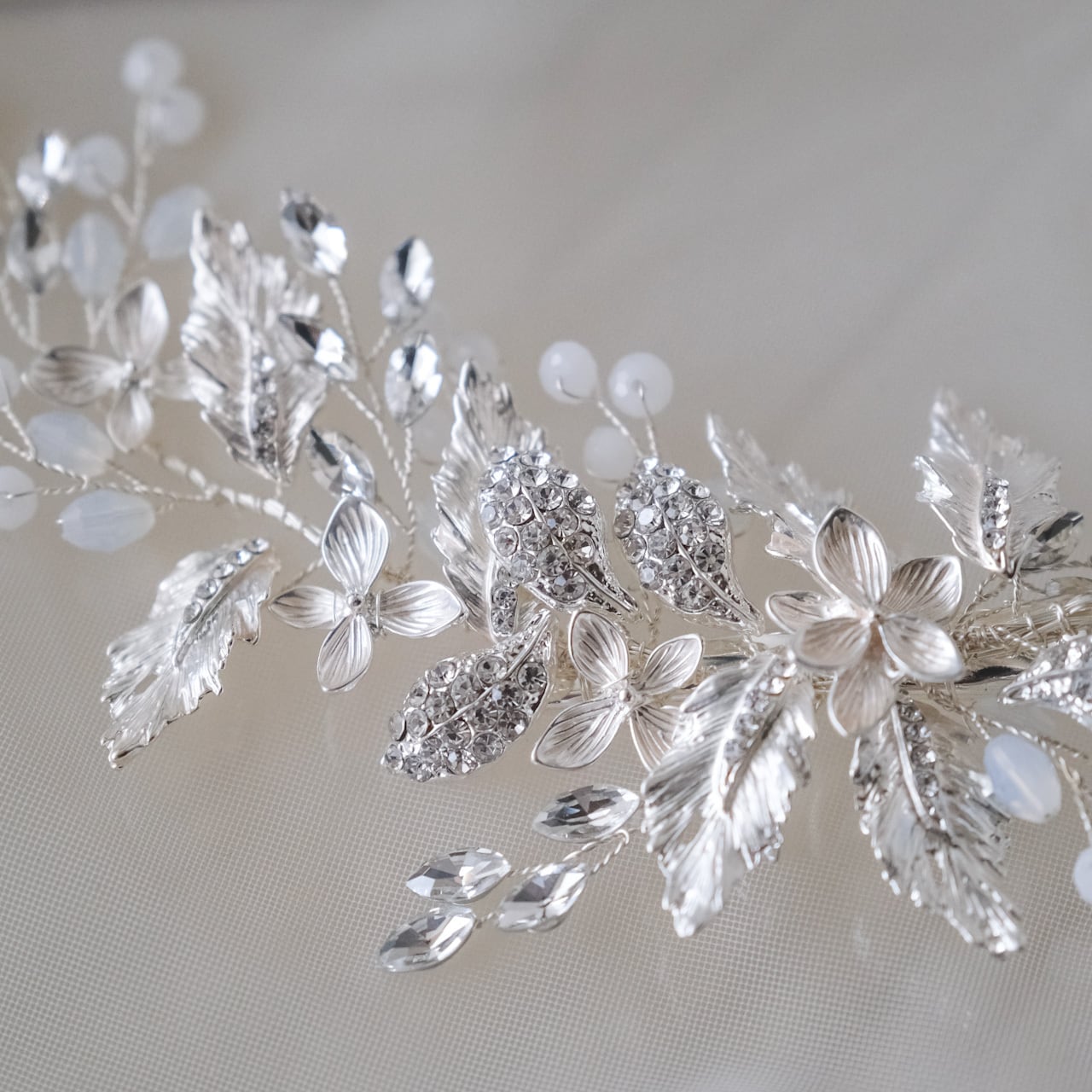 青柳 さきな様:j9-hd29 ブライダルヘッドドレス ビジュー リーフ ボンネ