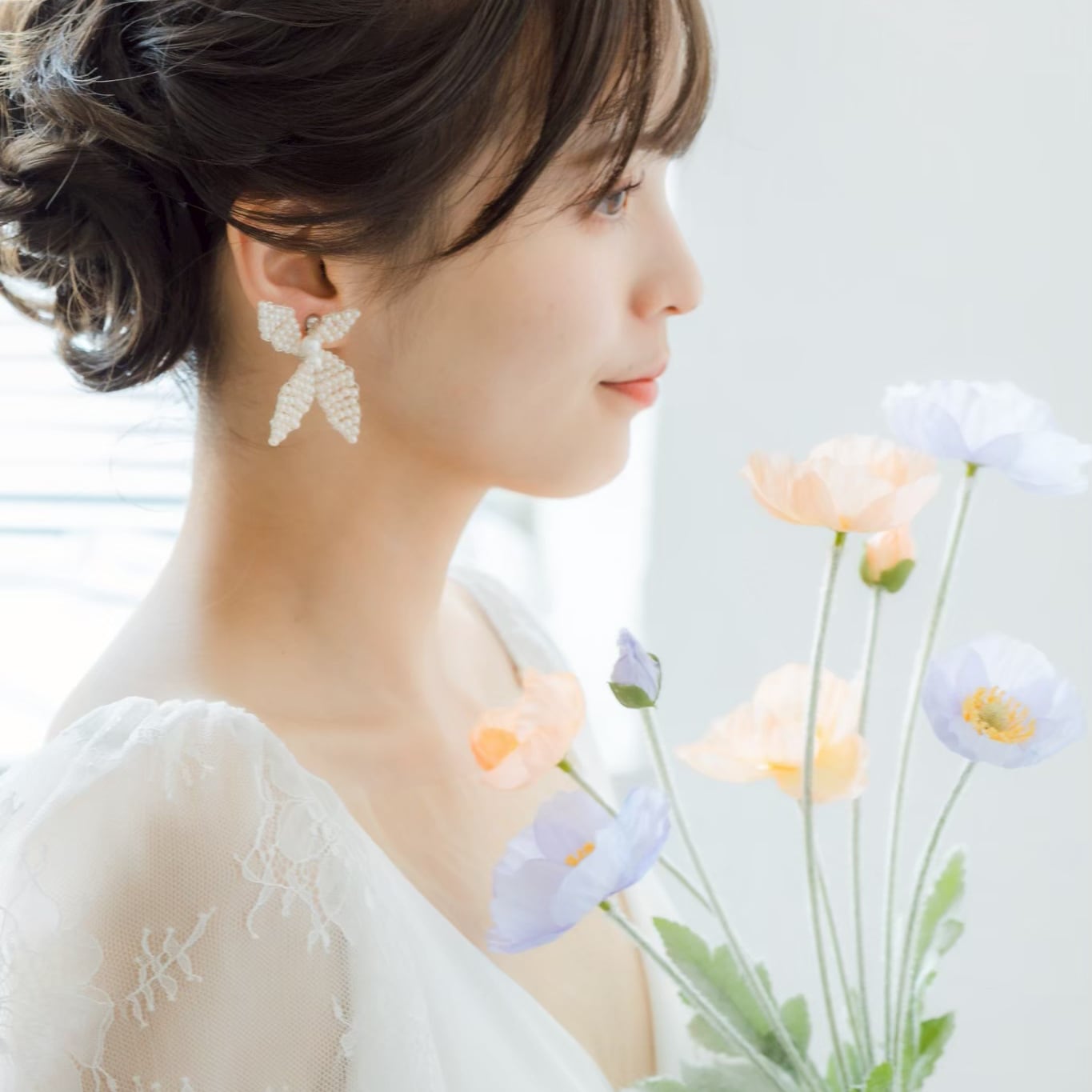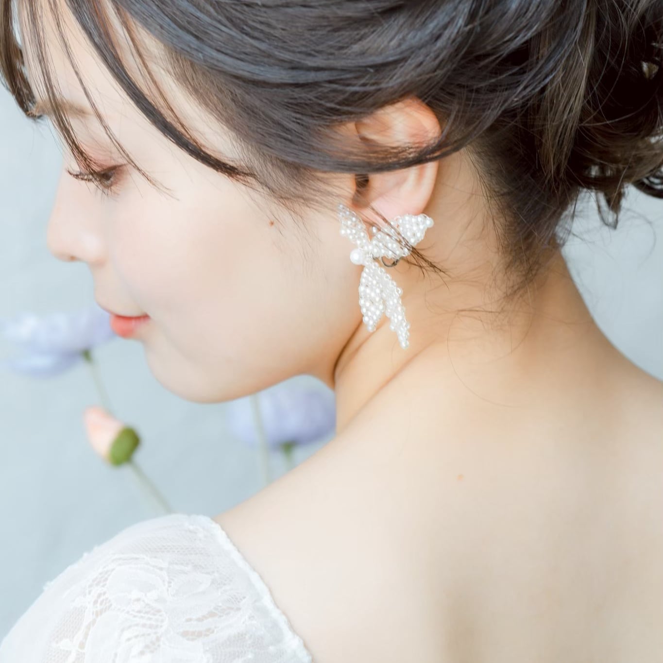 ナチュラルで可愛い花嫁スタイルを叶えるイヤリングです。