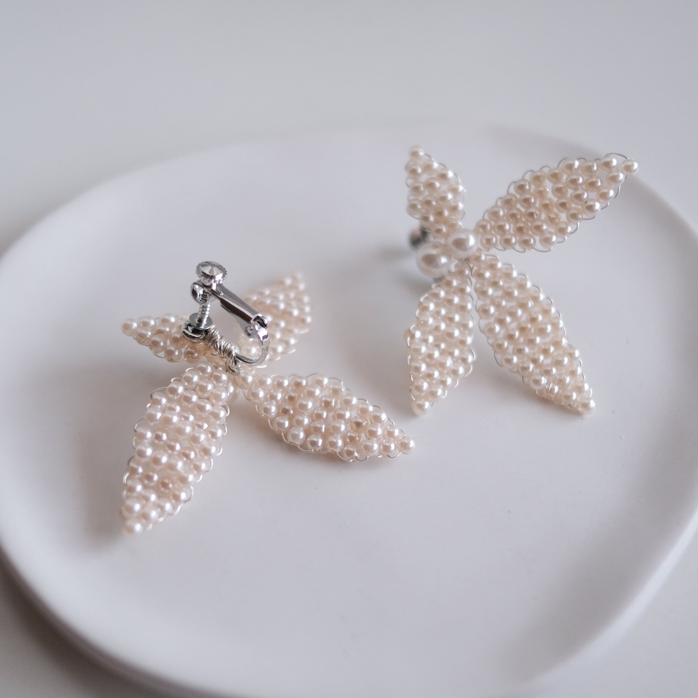 中尾様:y9-ea13【イヤリング】パール フラワー ブライダル シルバー