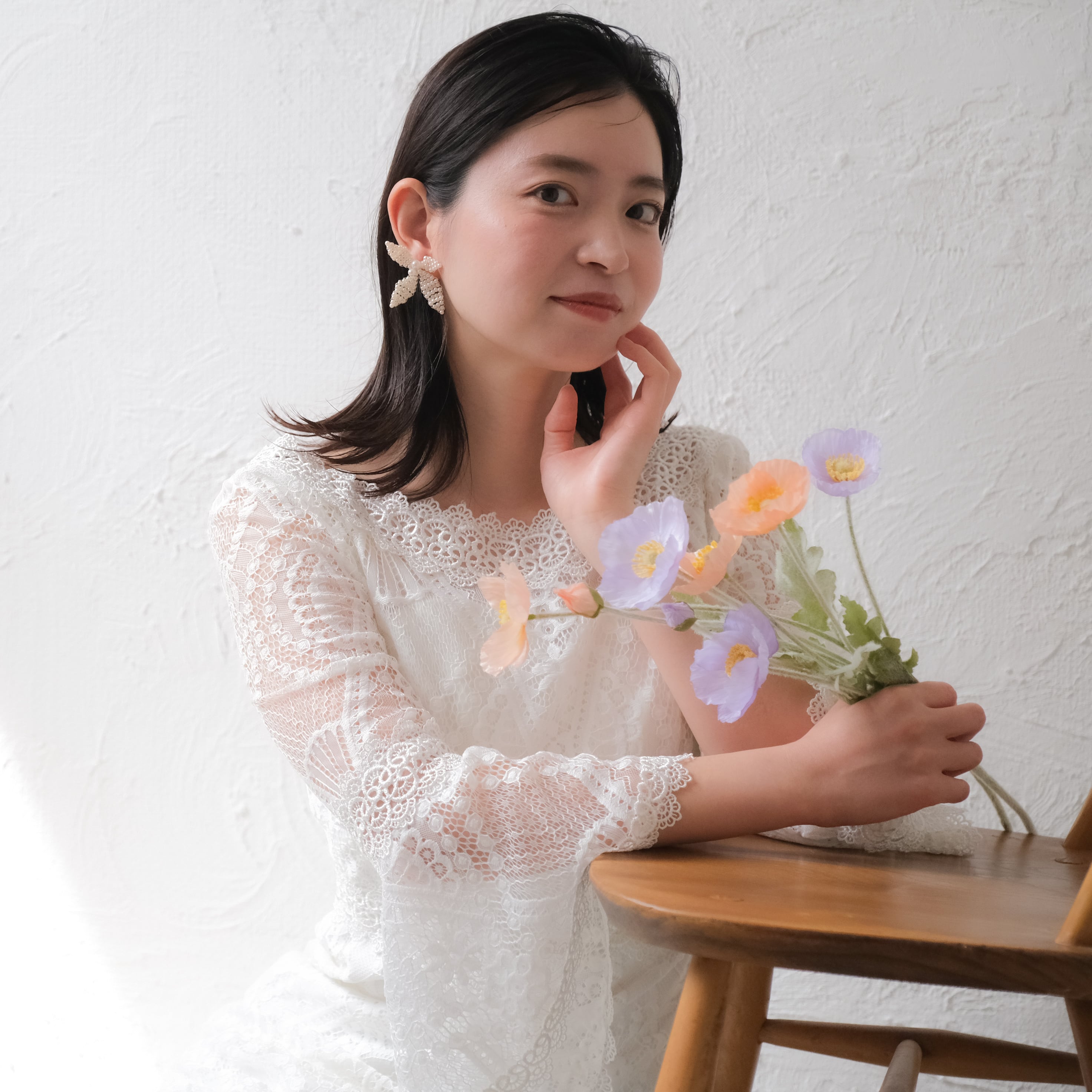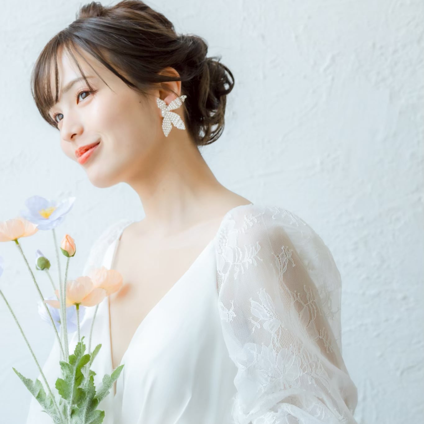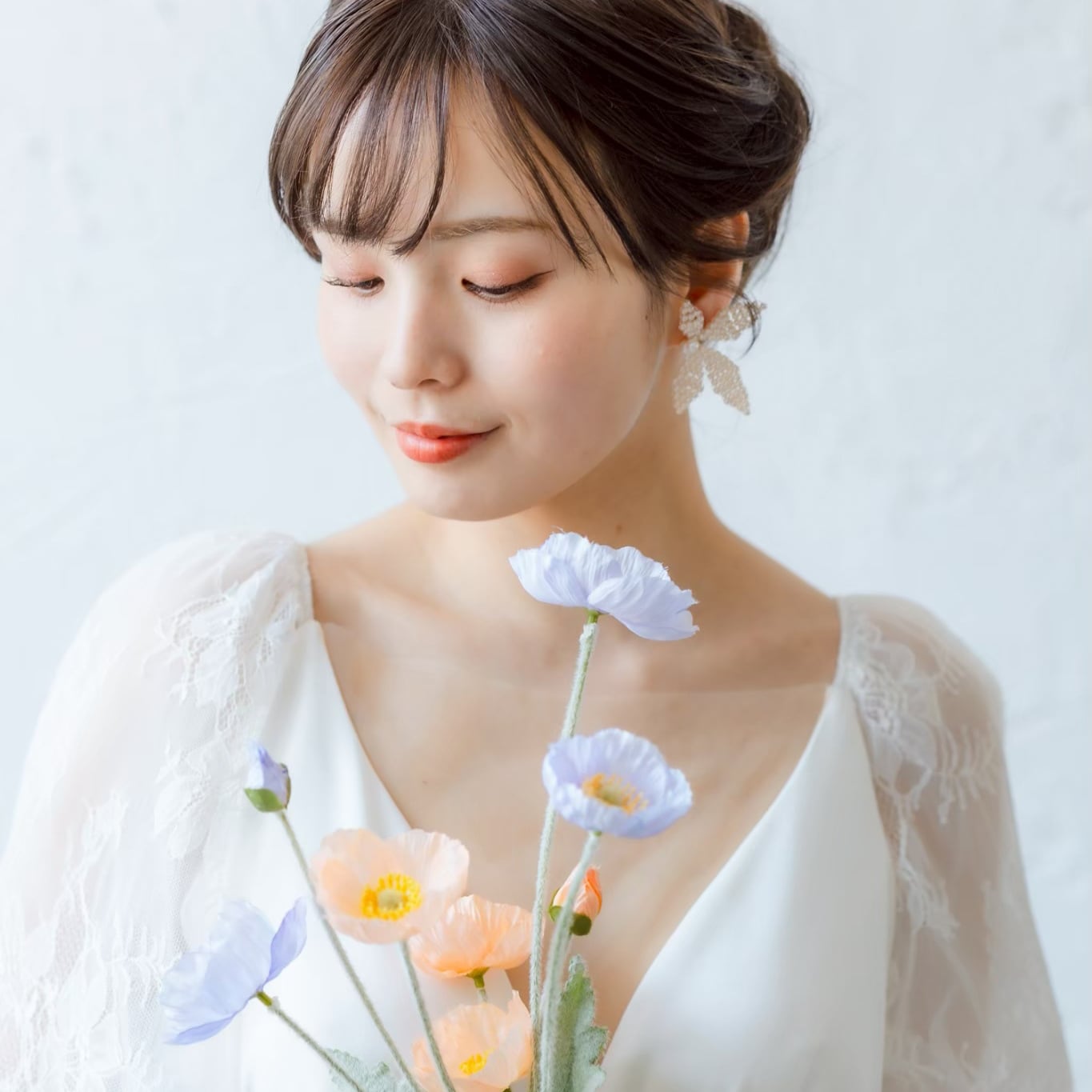 耳元で華やかに咲く花のように、結婚式や前撮りの特別な一日を彩ります。
