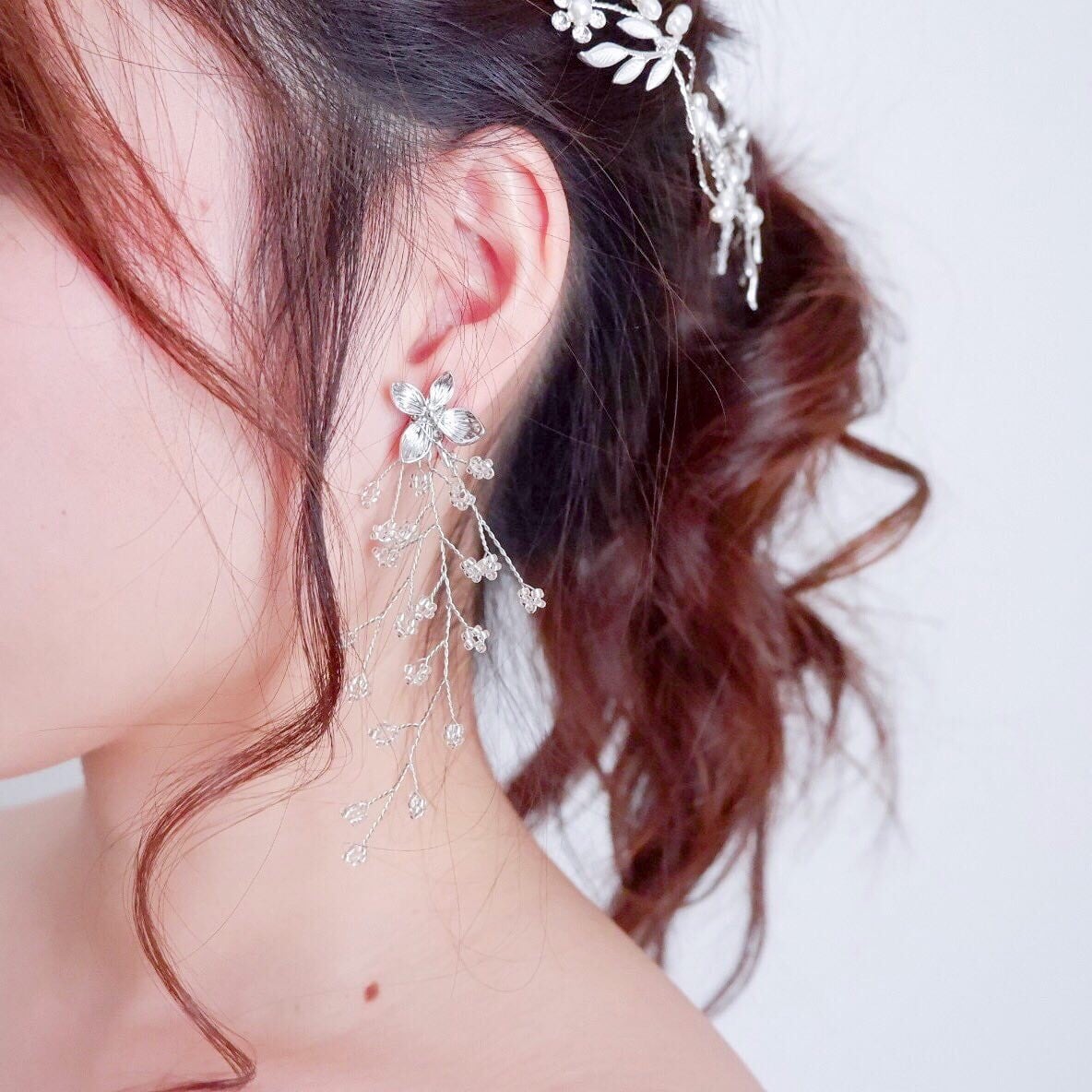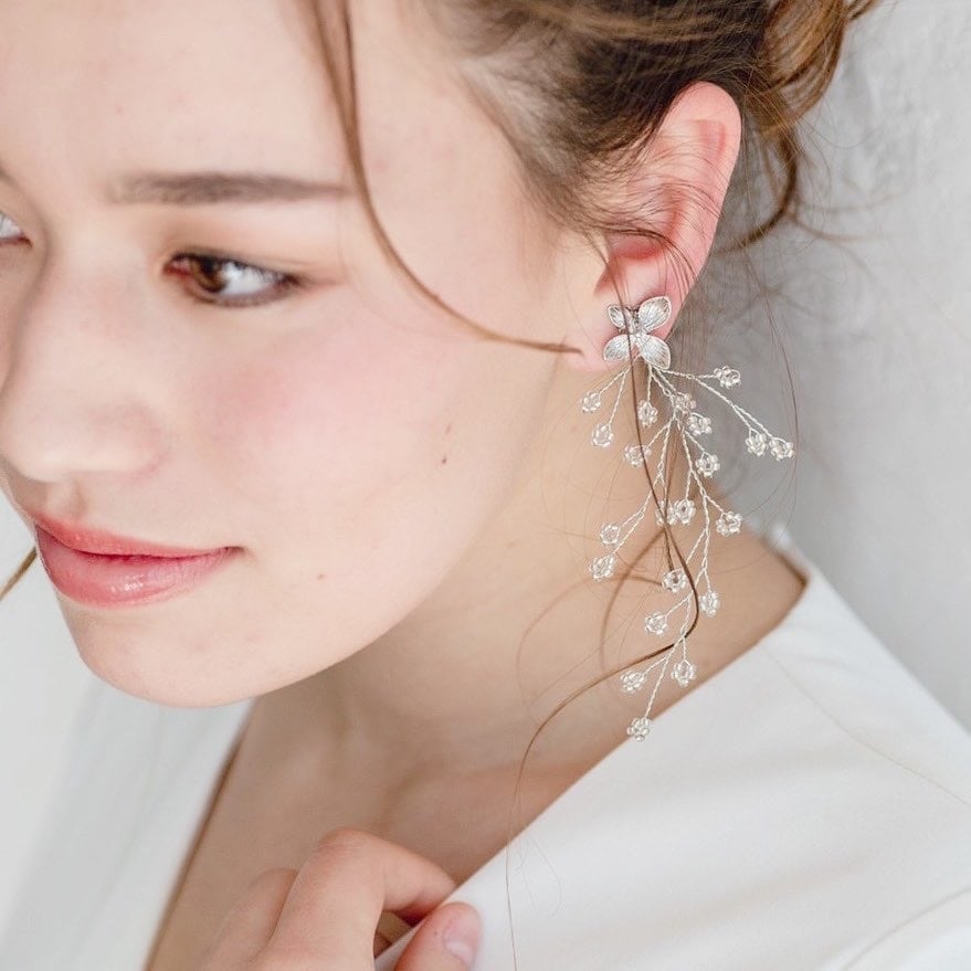 e2-pe6【ピアス /イヤリング】ブライダル 小枝 フラワー ビーズ