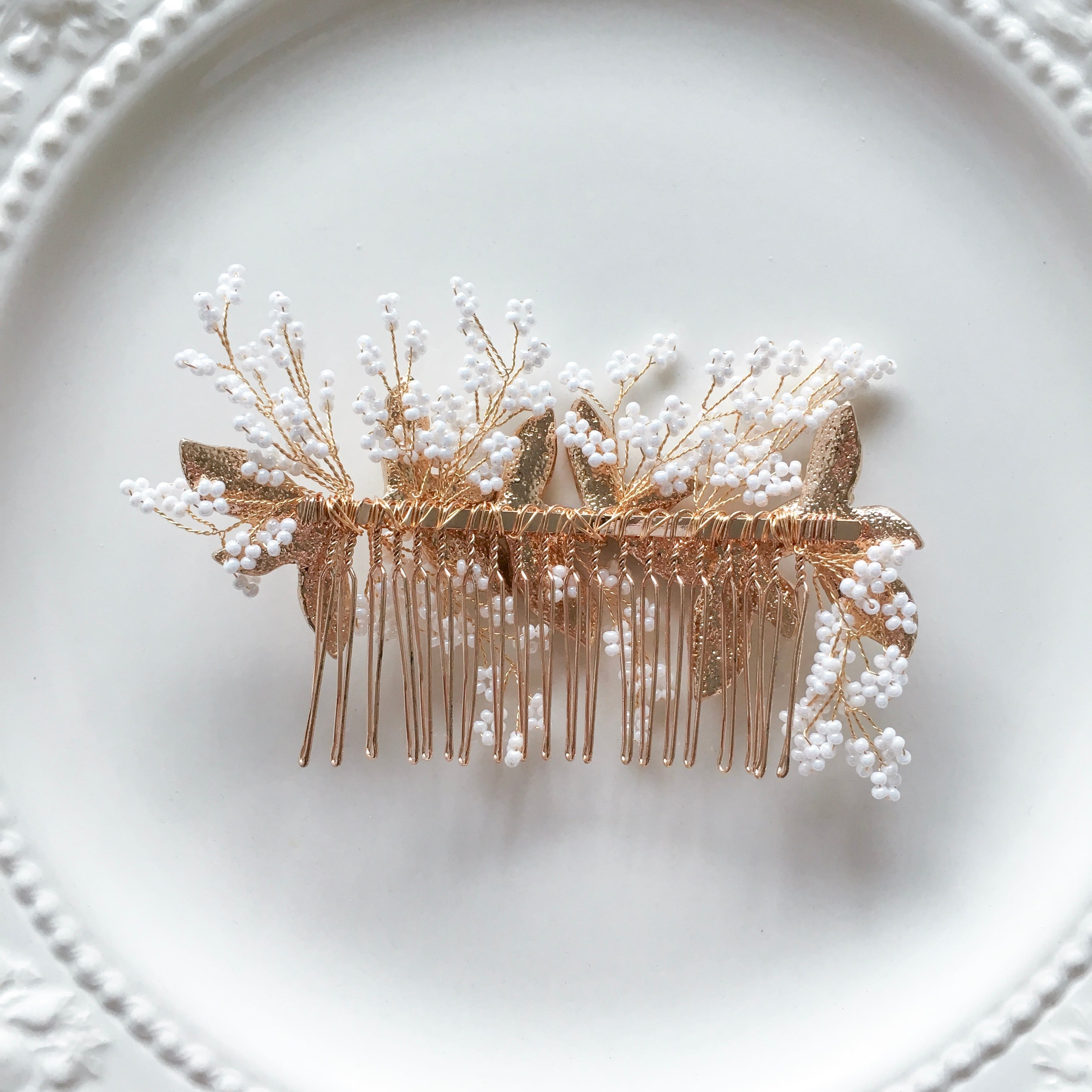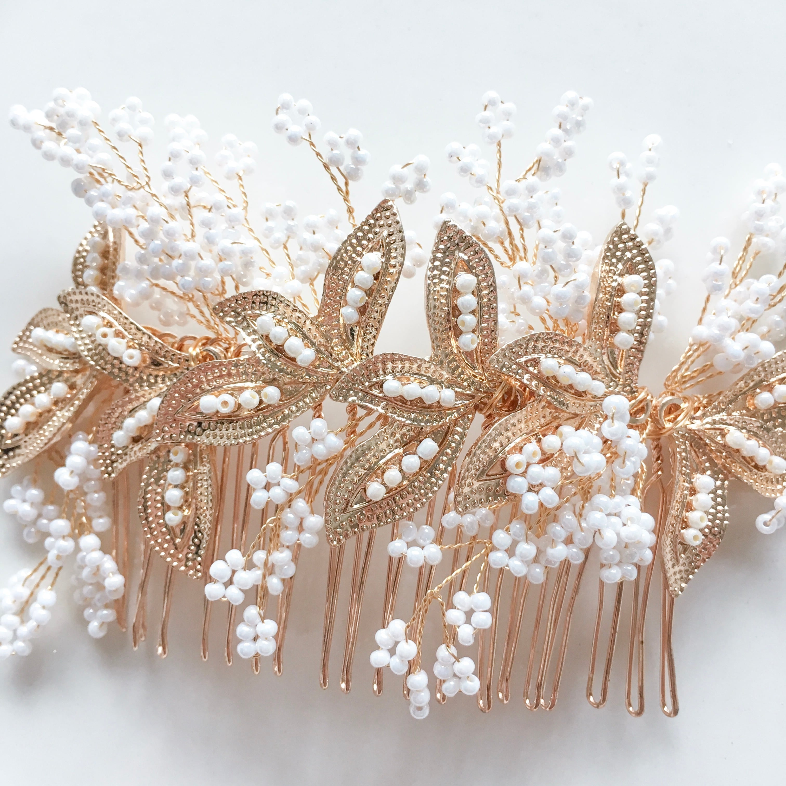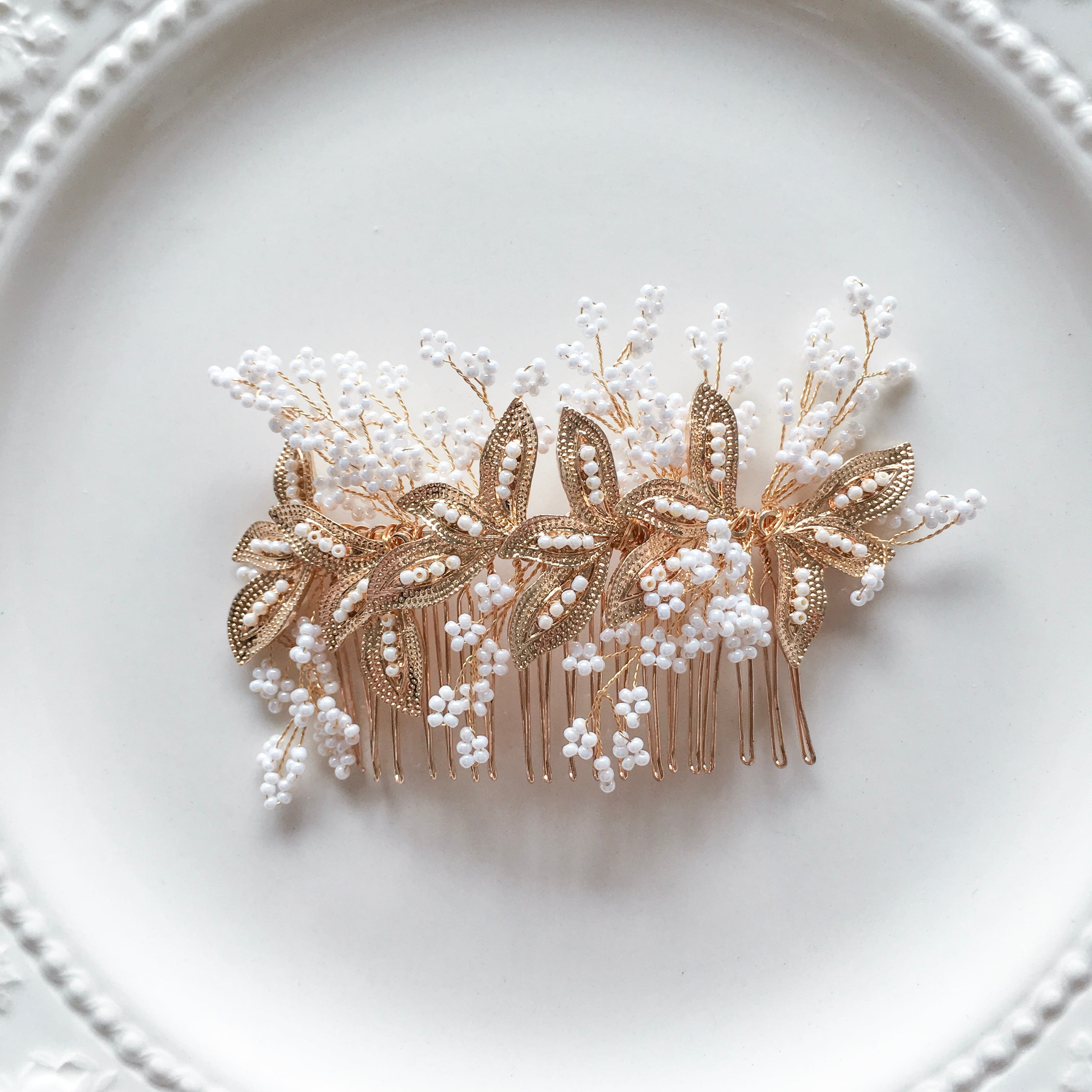 h1-hd25 ブライダルヘッドドレス ビーズ リーフ ゴールド