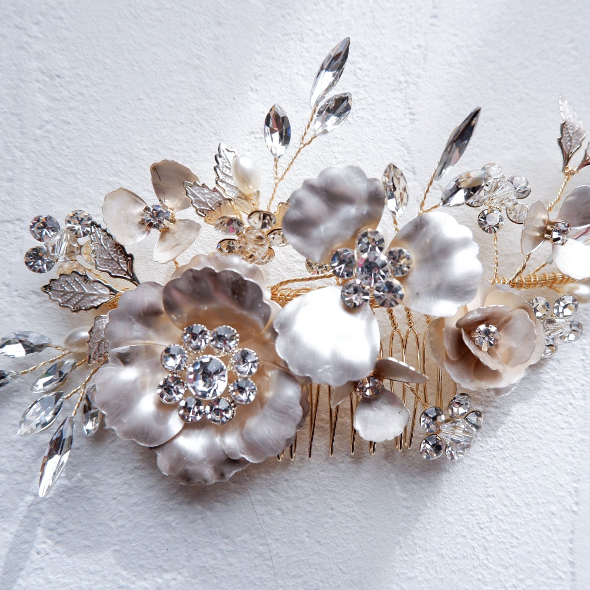 ・ピンクゴールドフラワーが魅力的なヘッドドレス!