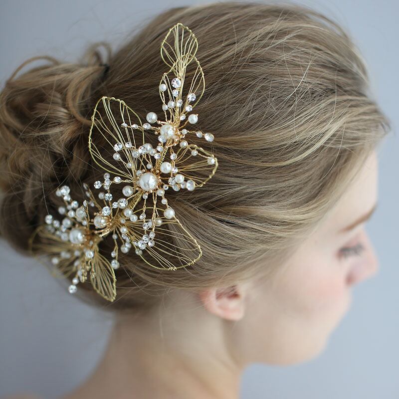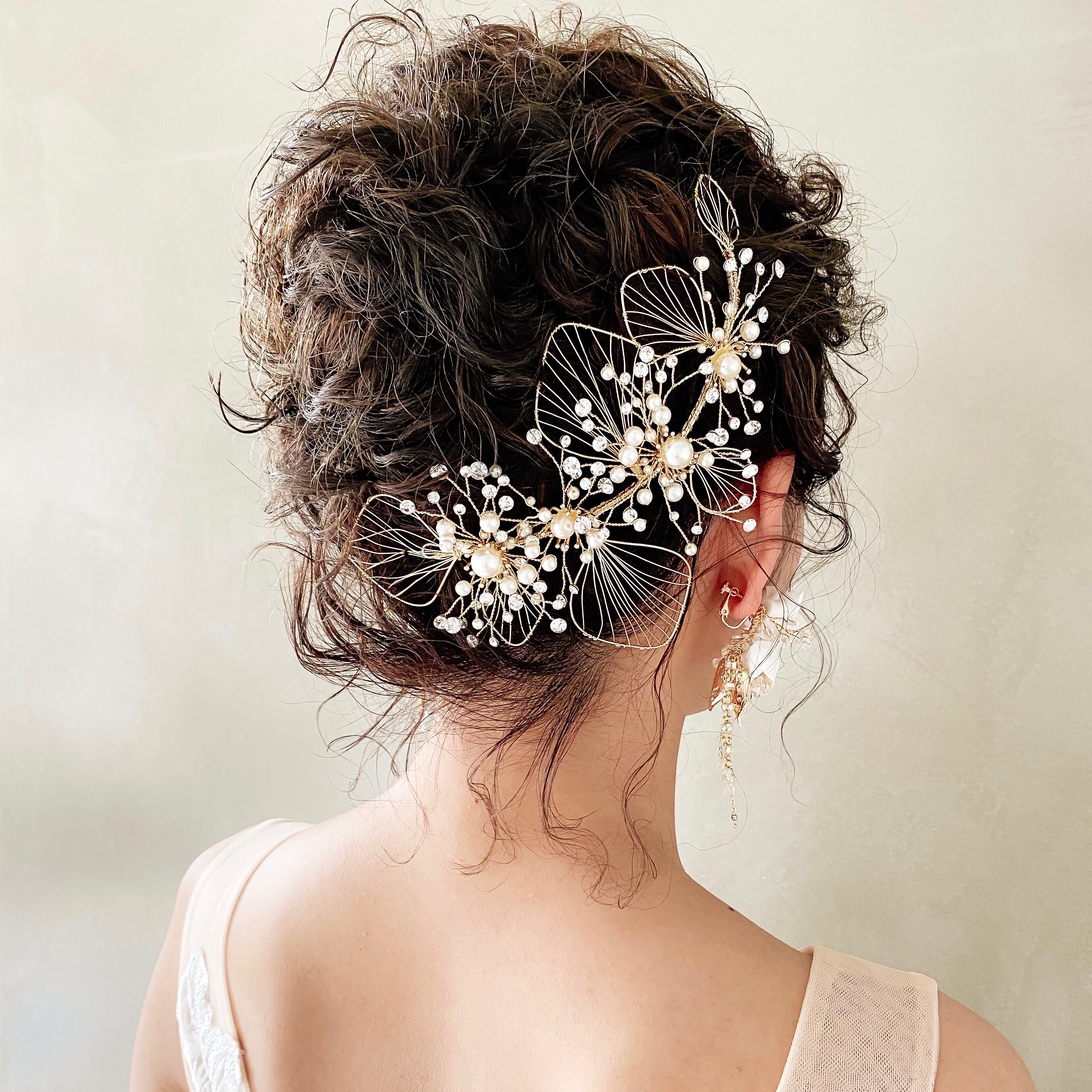 m6-hd36 ブライダルヘッドドレス ビジュー フラワー ボンネ ゴールド