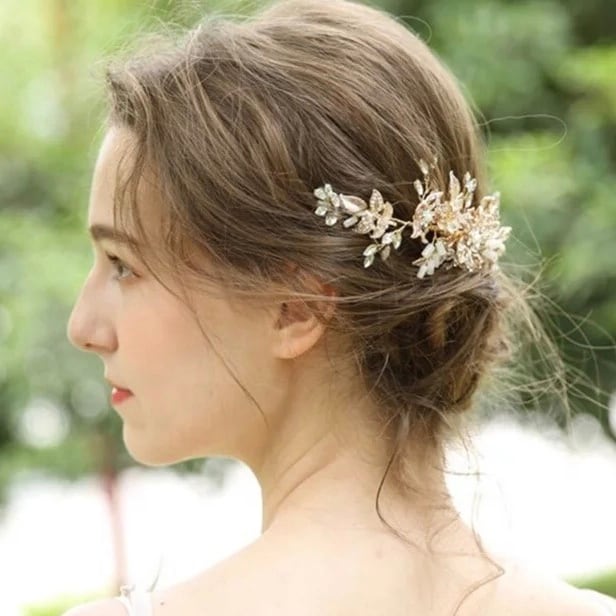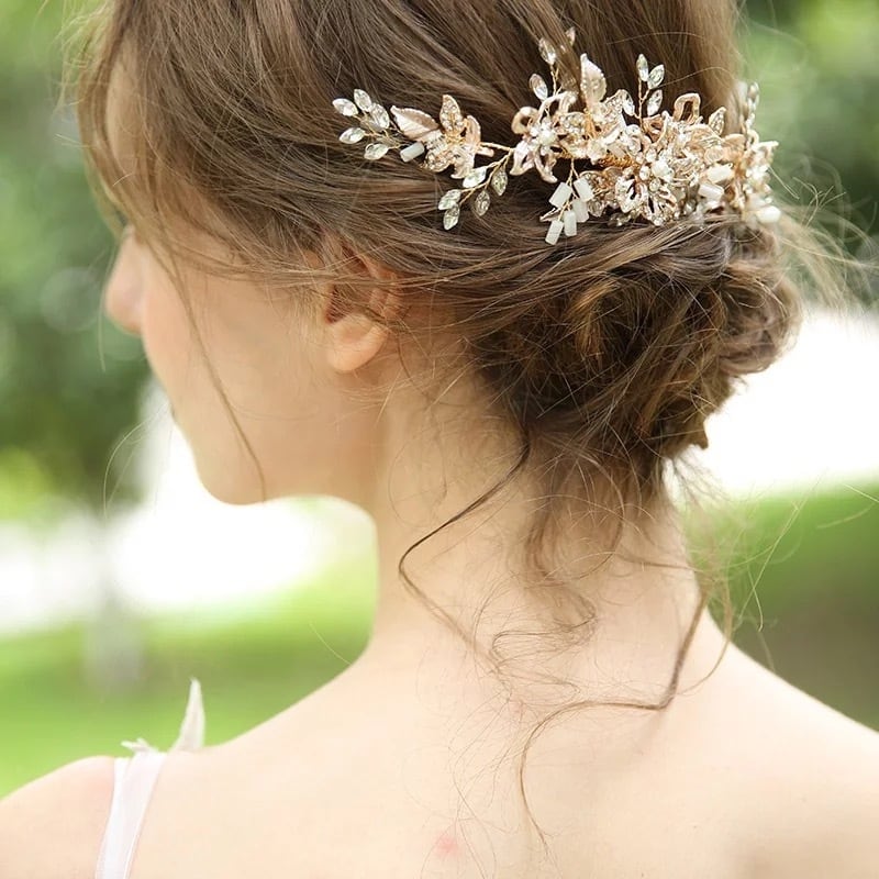 m7-hd35 ブライダルヘッドドレス ビジュー フラワー ボンネ ゴールド