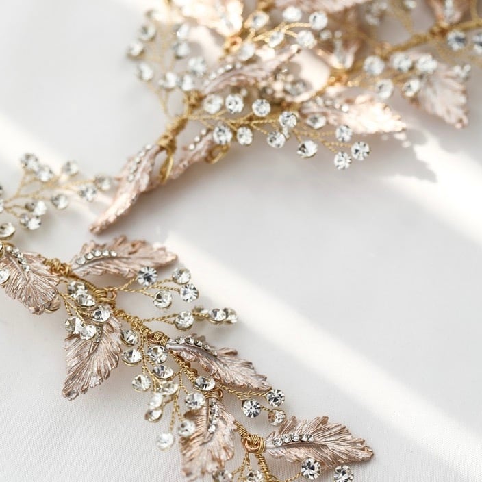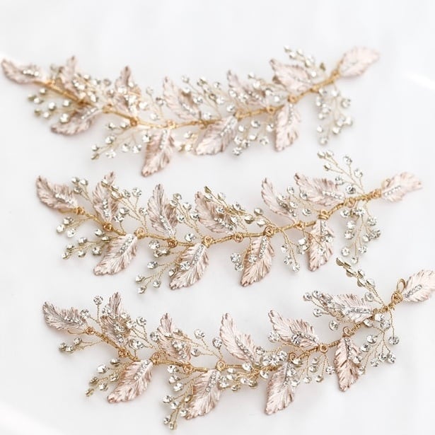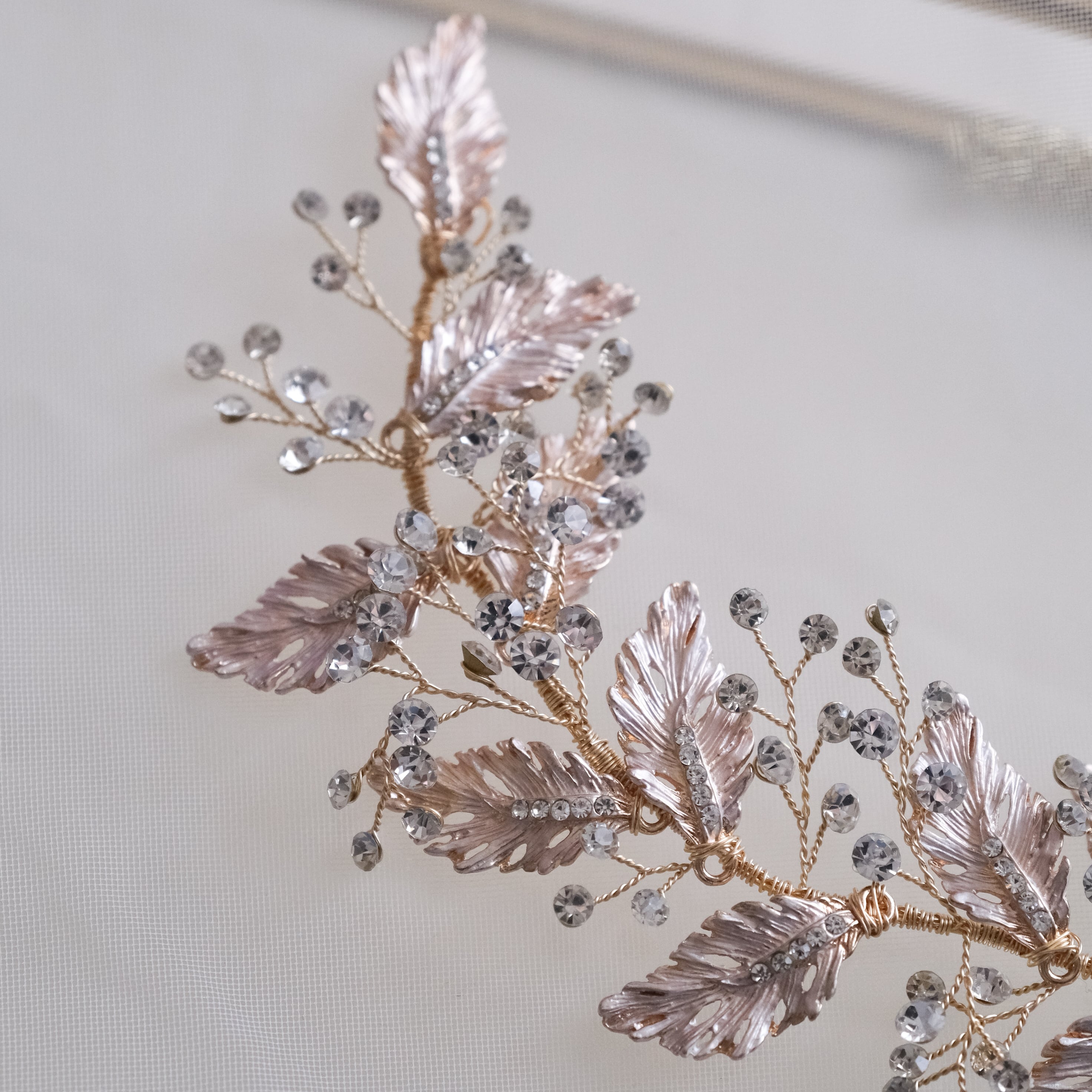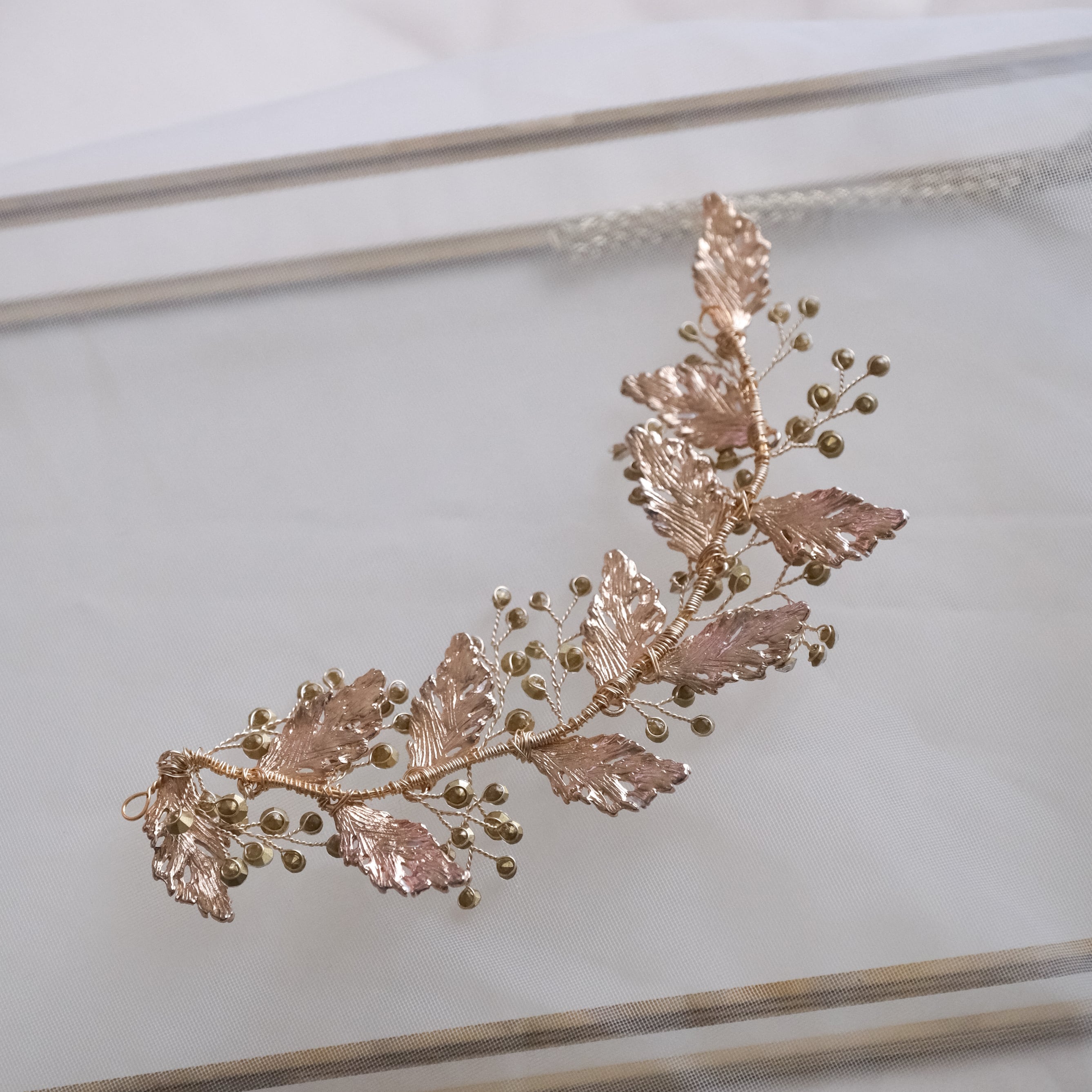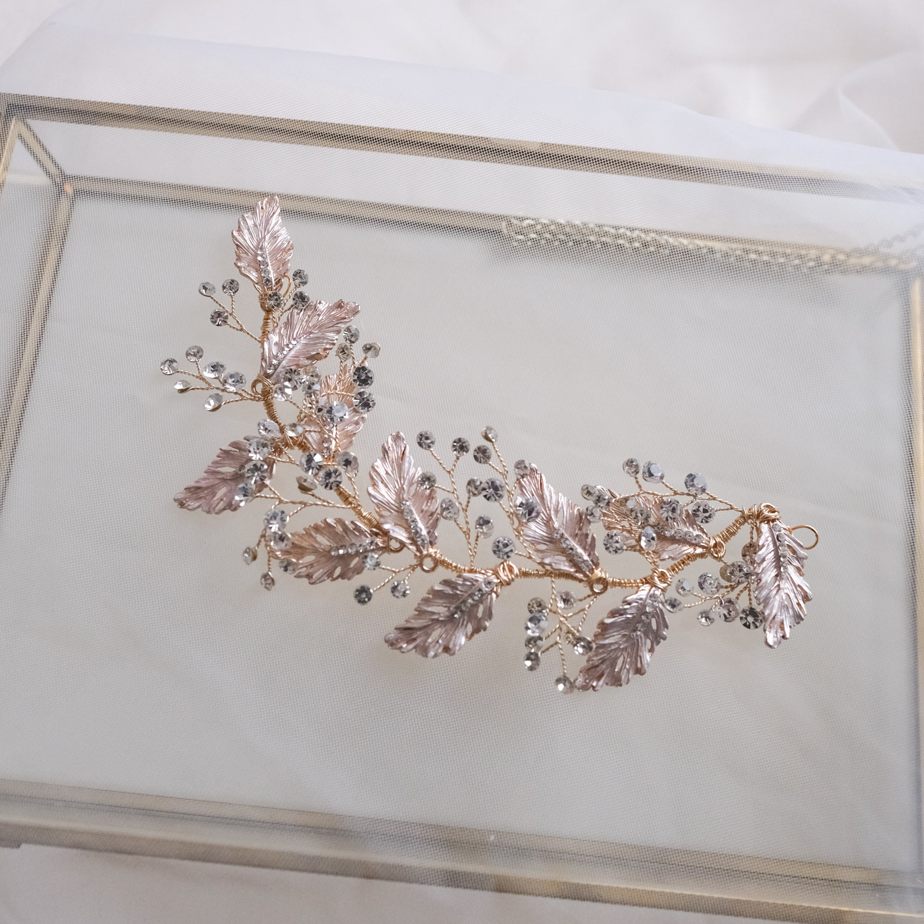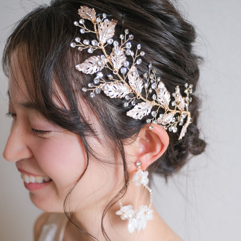 m14-hd43 ブライダルヘッドドレス ビジュー リーフ ボンネ ゴールド