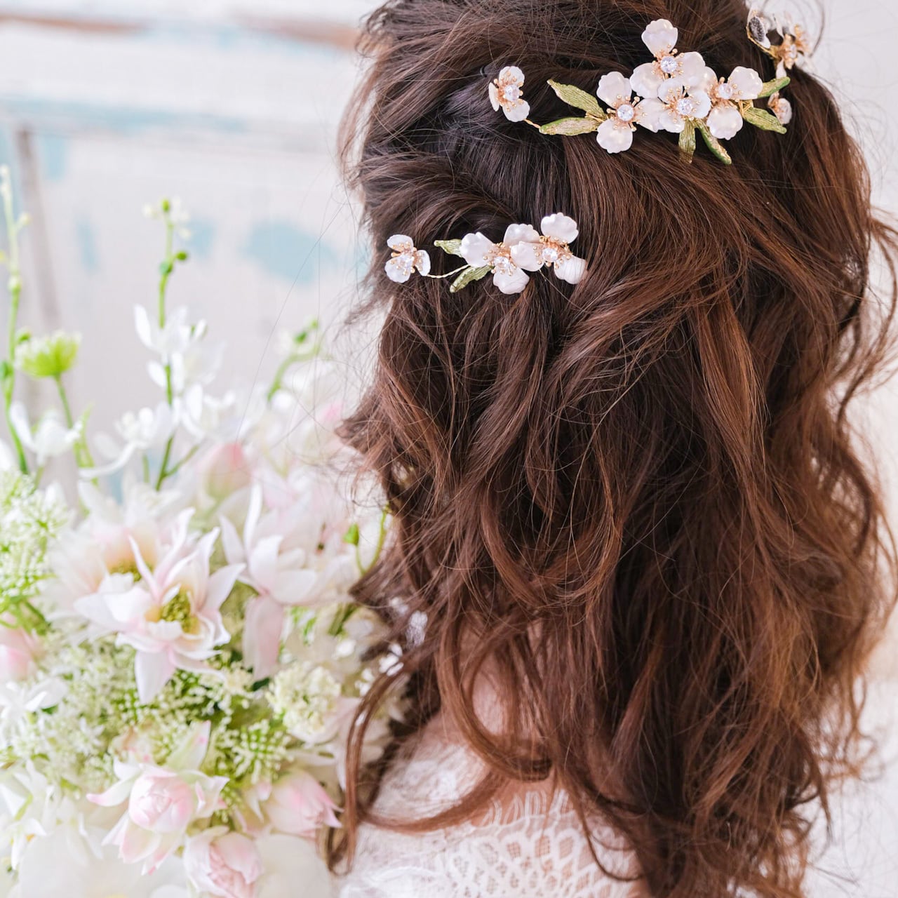 p12-hd52 (3点セット) ブライダルヘッドドレス フラワー ピン パール ゴールド