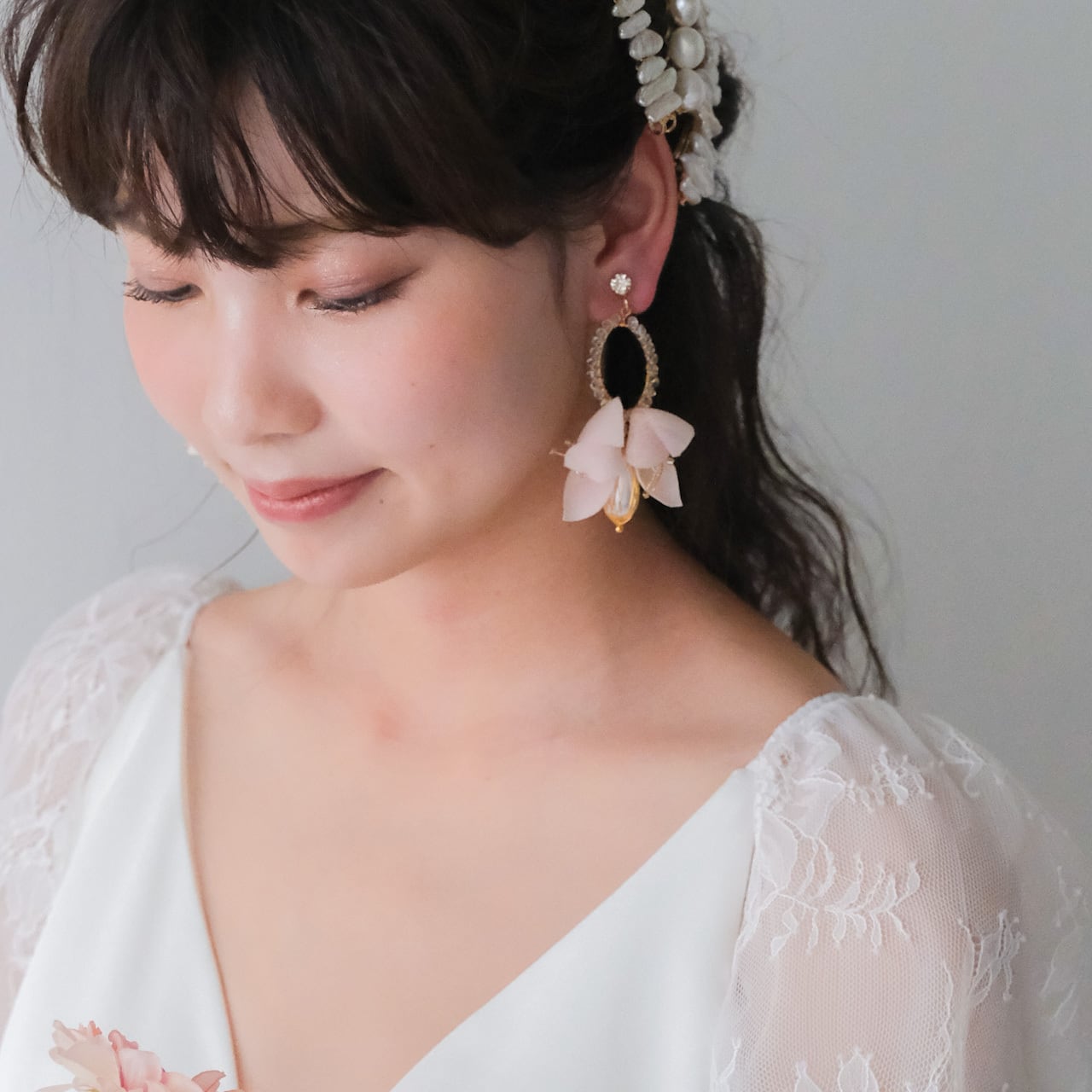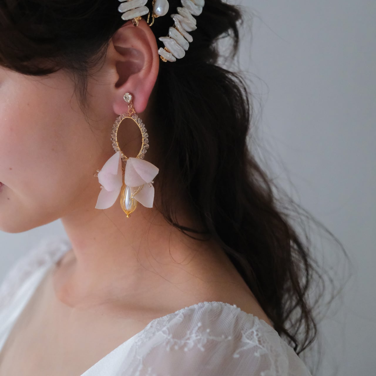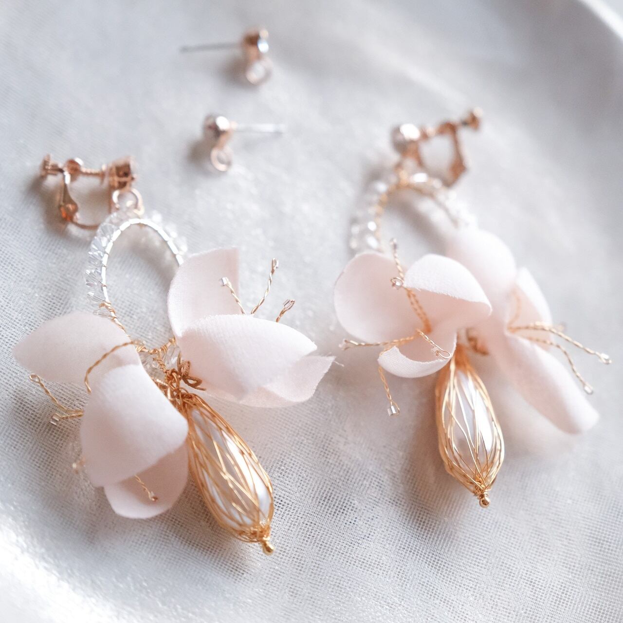 ・ビーズのオパールに布の花びら(薄ピンク)とパールの蕾