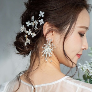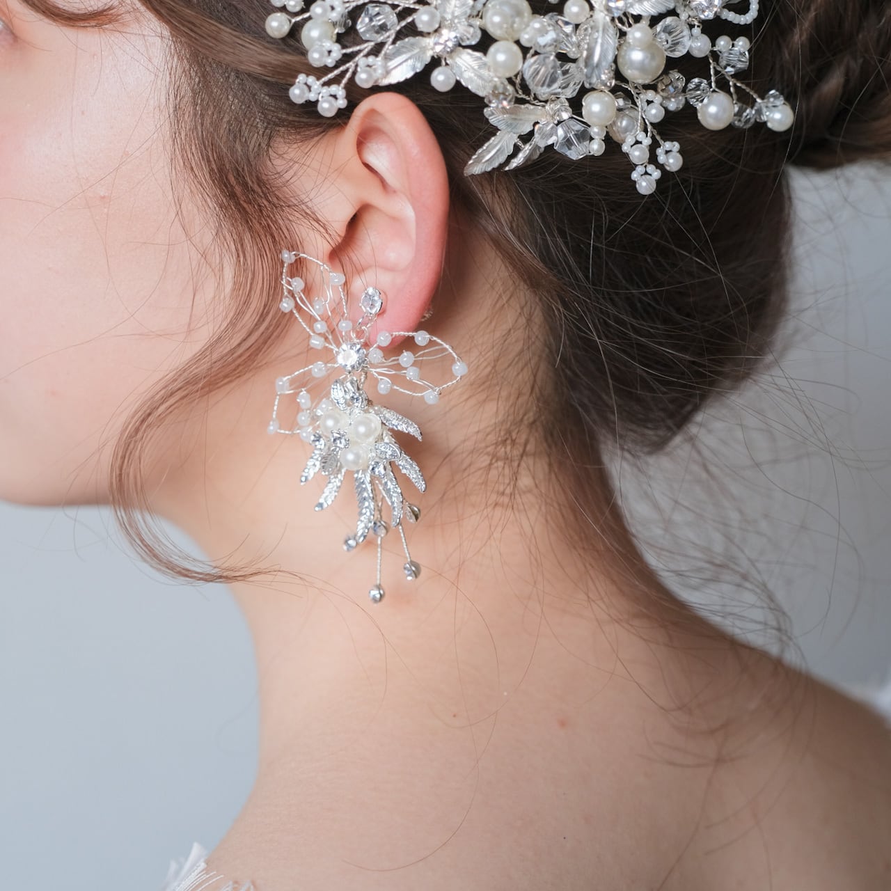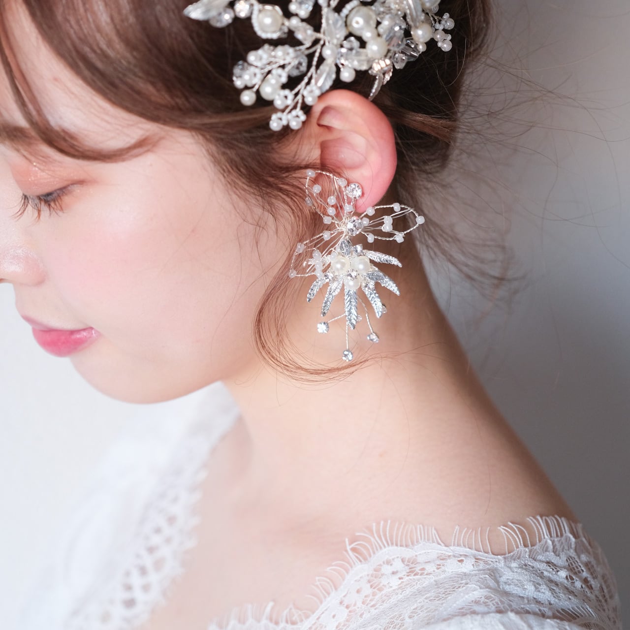 p18-pe44【ピアス /イヤリング】ブライダル 小枝 パール ビジュー シルバー