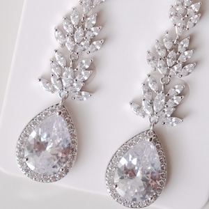 大粒の美しいしずく型の石が魅力のブライダルピアス。