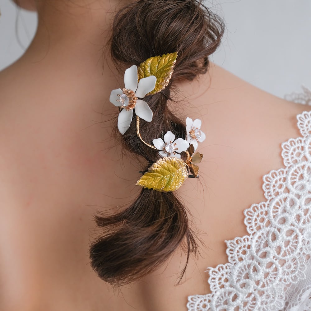 r24-hd79 (2点セット) ブライダルヘッドドレス フラワー リーフ コーム