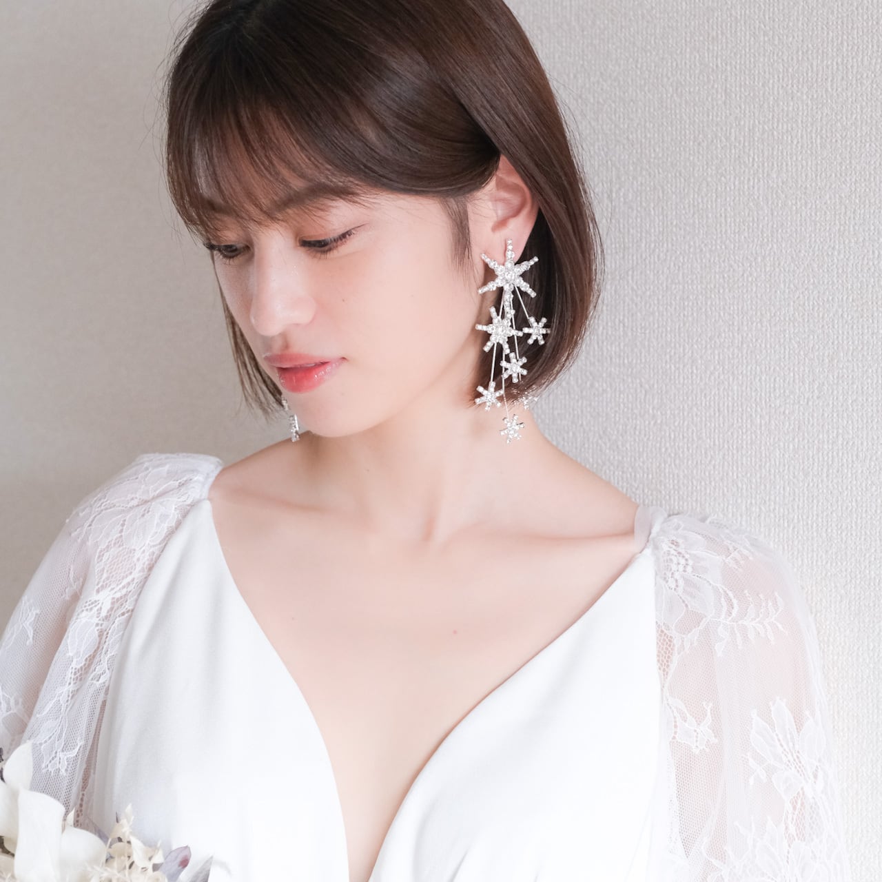 t11-pi39【ピアス】ビジュー ロングスター ウェディング ブライダル シルバー