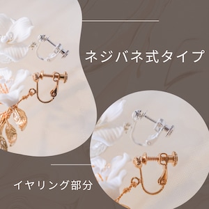 u13-pe83【ピアス /イヤリング】ブライダル 小枝 ホワイトフラワー シルバーリーフ