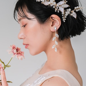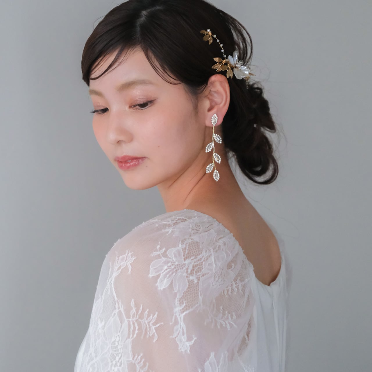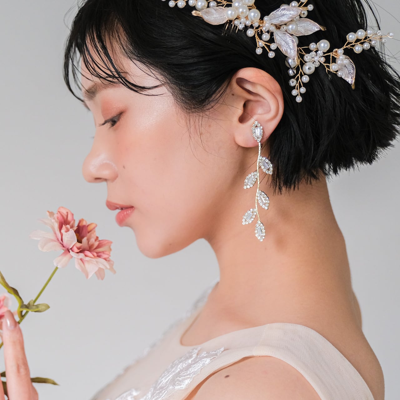 ビジューリーフが、耳元で華やかな輝きを放ちます。