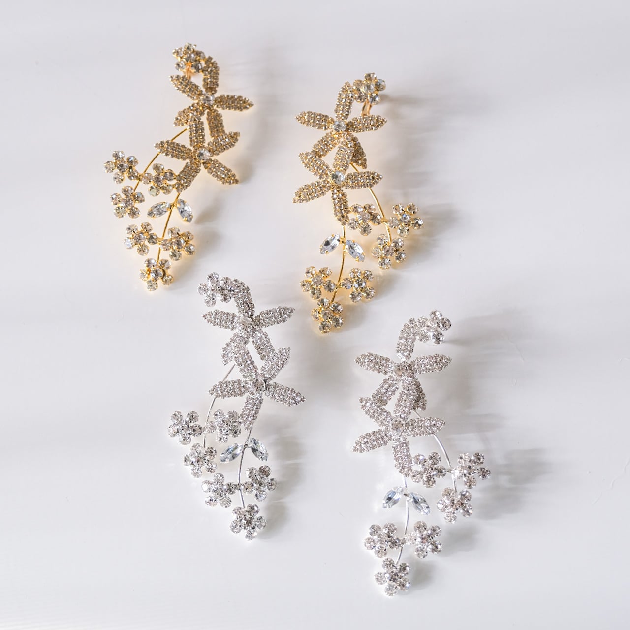 v5-pi57【ピアス】ブライダル ビジュー ロングフラワー シルバー