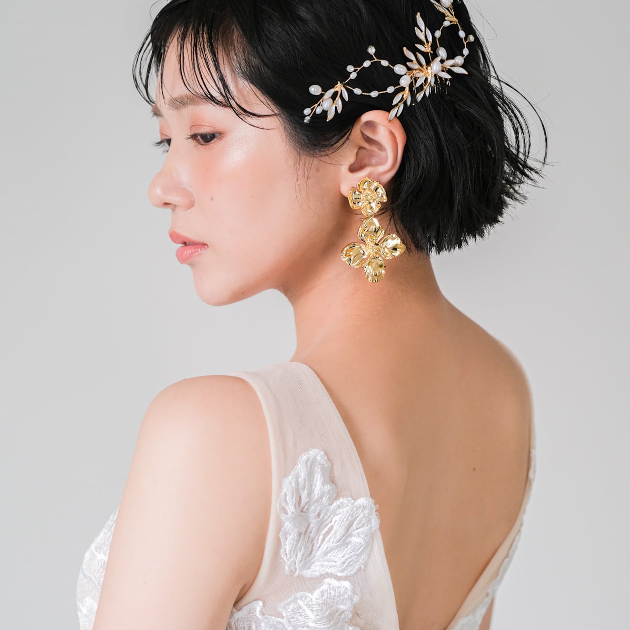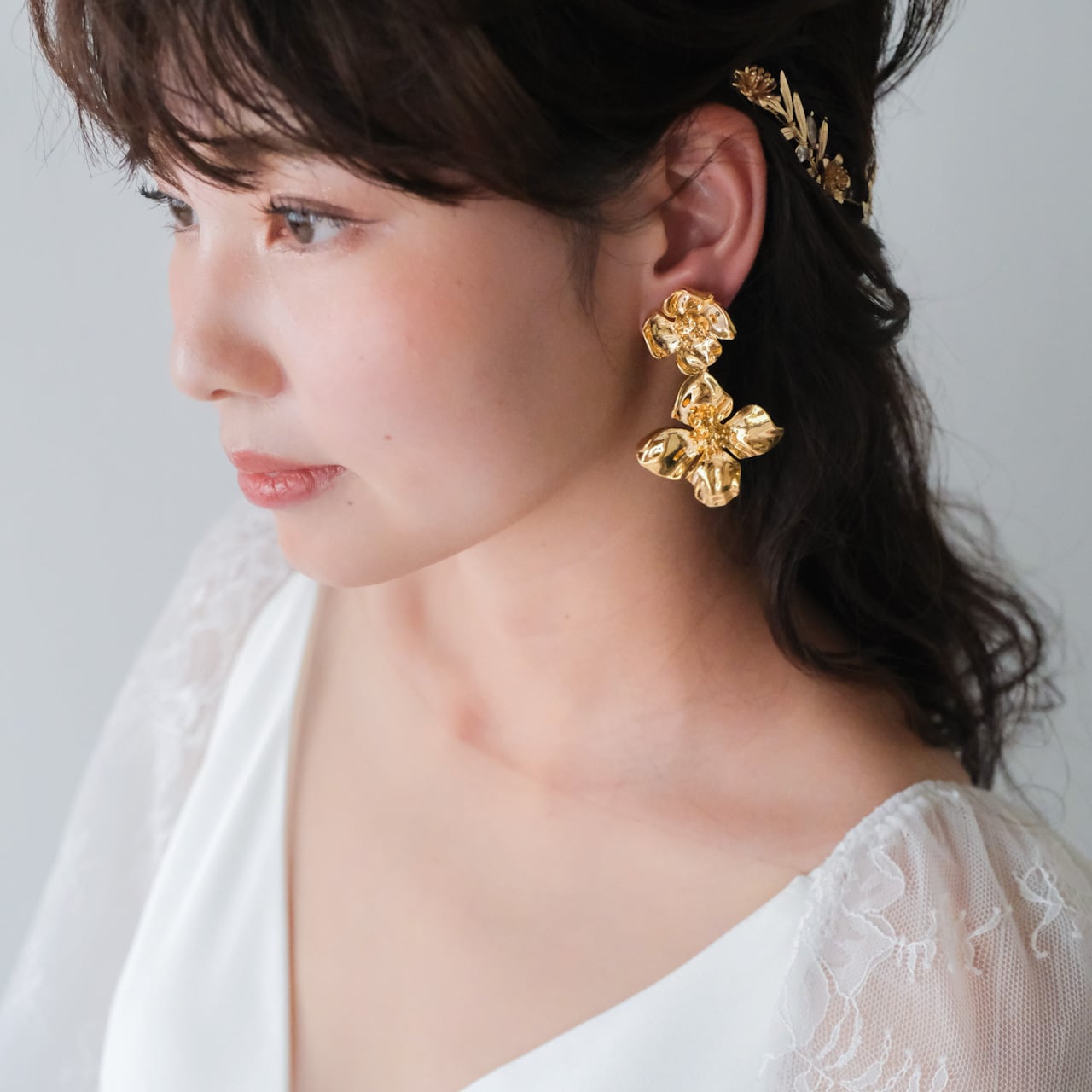 華やかなブライダルシーンにぴったりのアンティーク風フラワーピアス。