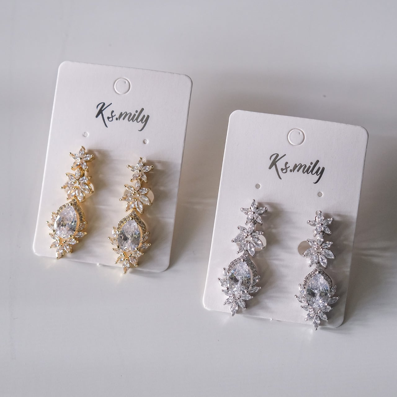 v33-pe107【ピアス /イヤリング】ジルコニア ビジュー ブライダル シルバー
