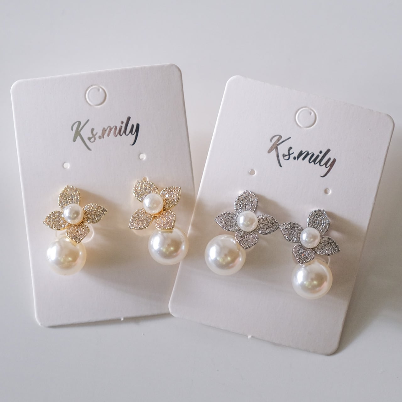 ジルコニアとパールでつくられたお花のようなデザインが、清楚で可憐な印象を与えてくれます。