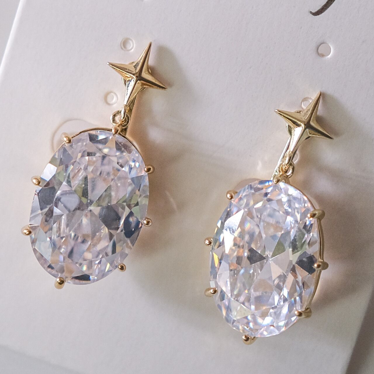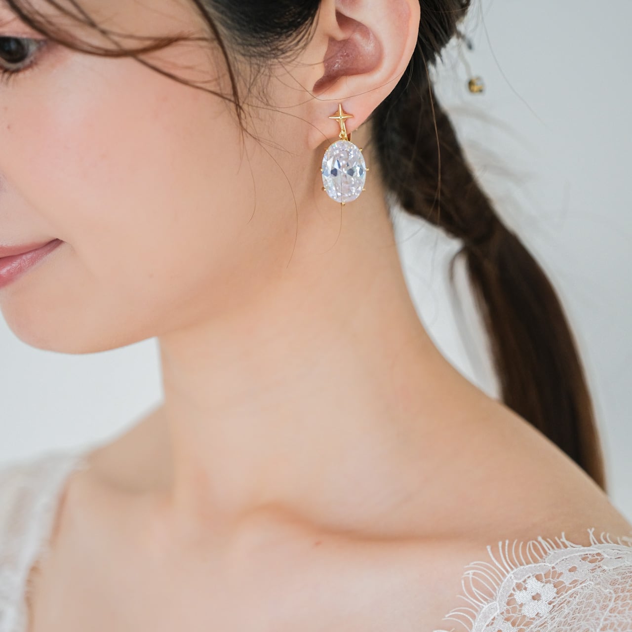 輝く瞳のような、オパール型のジルコニアが美しいブライダルピアス。