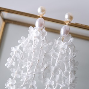 v46-pi70【ピアス】ブライダル タッセル パール ビーズ ホワイトフラワー