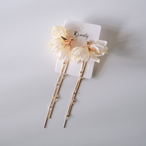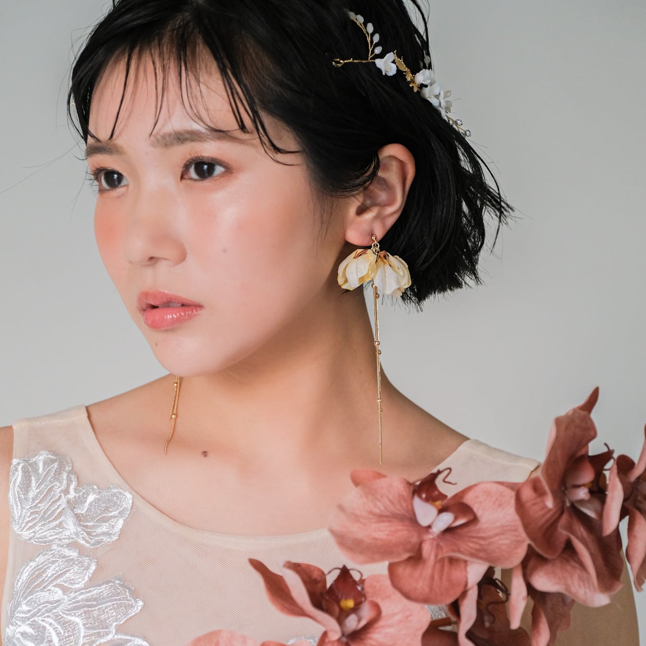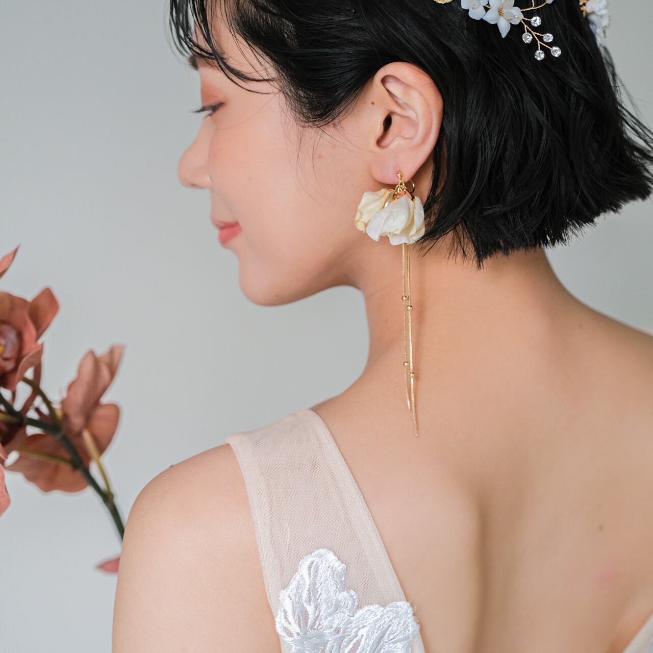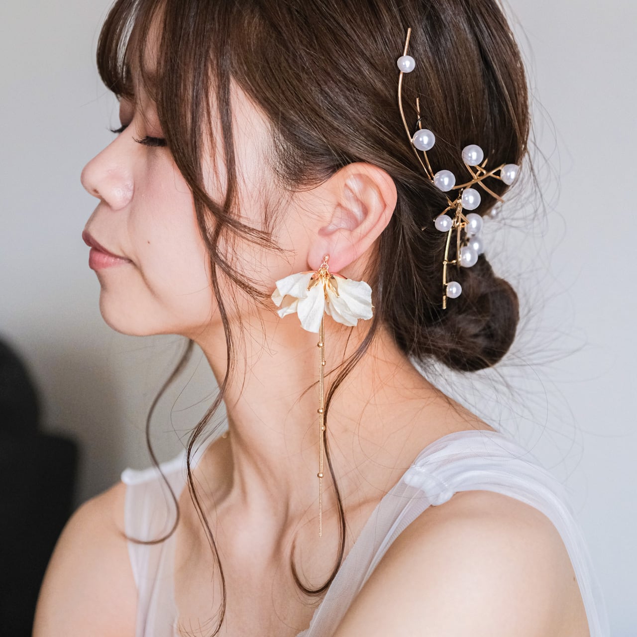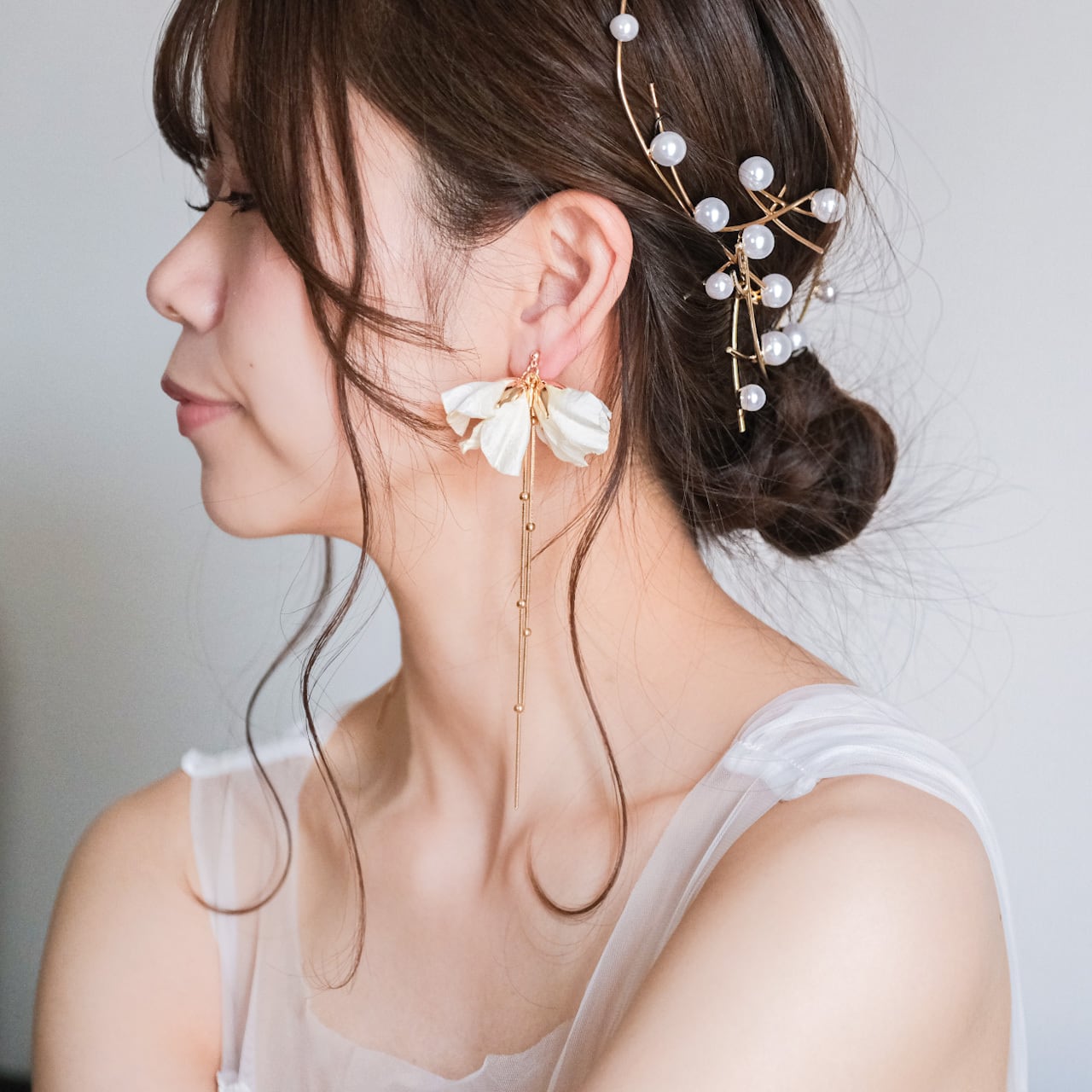 v49-pe118【ピアス /イヤリング】ブライダル アイボリーフラワー ゴールド