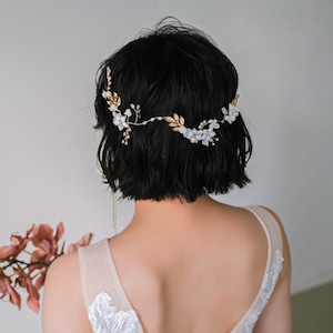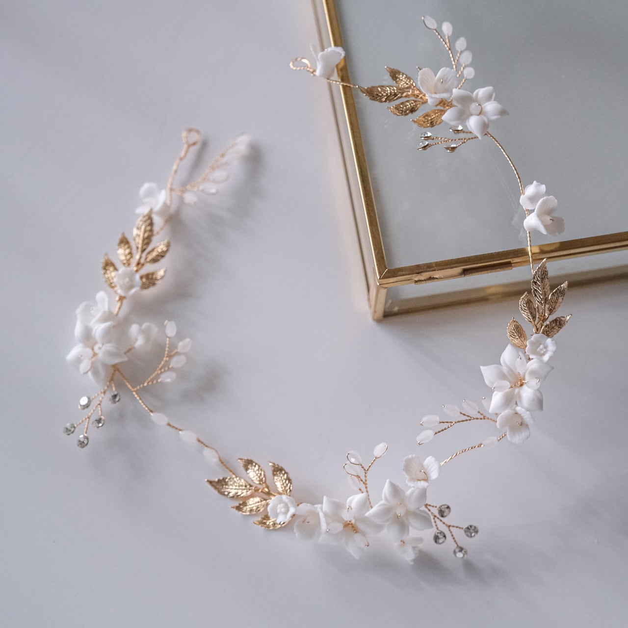 v55-hd112 ブライダルヘッドドレス 小枝カチューシャ ホワイトフラワー ゴールド
