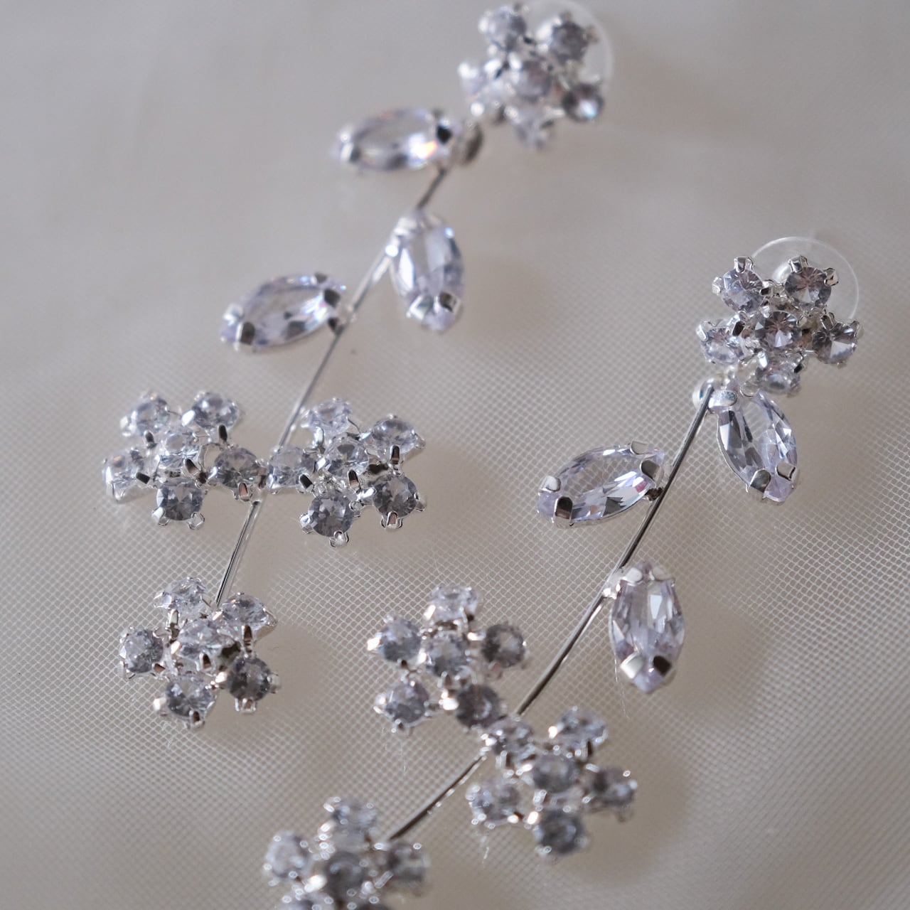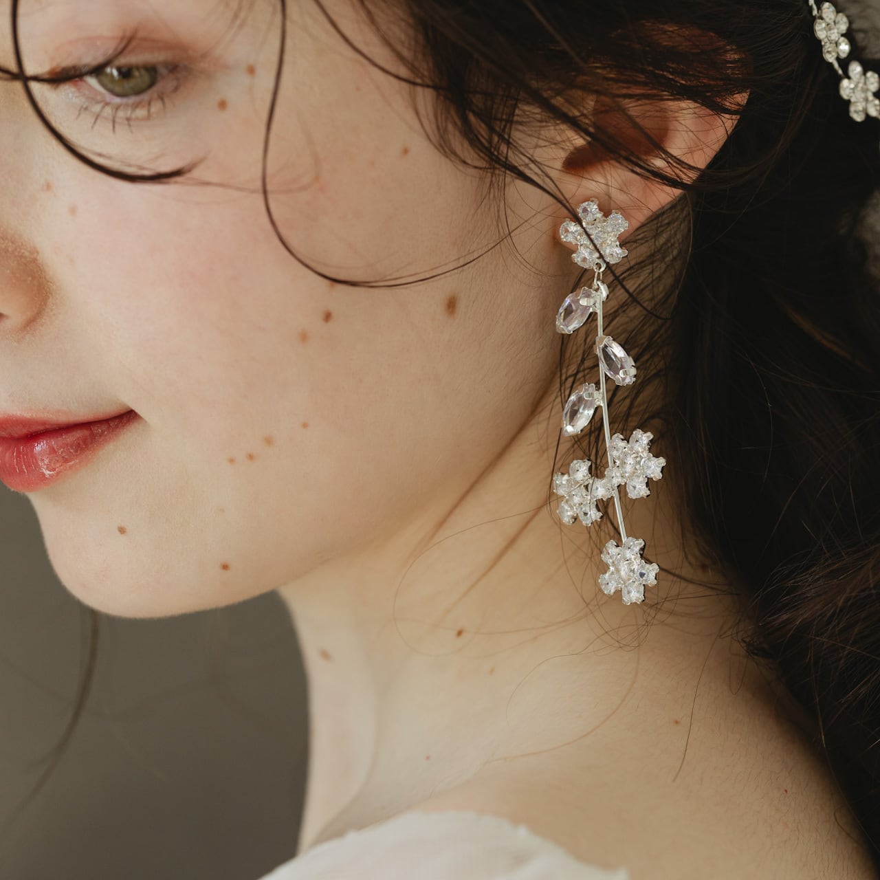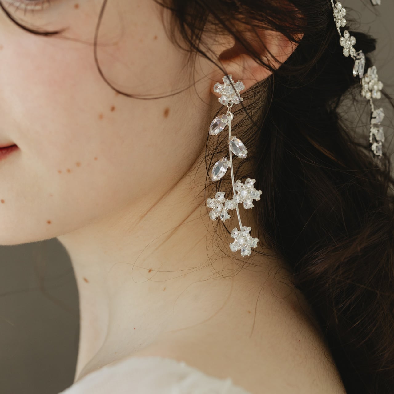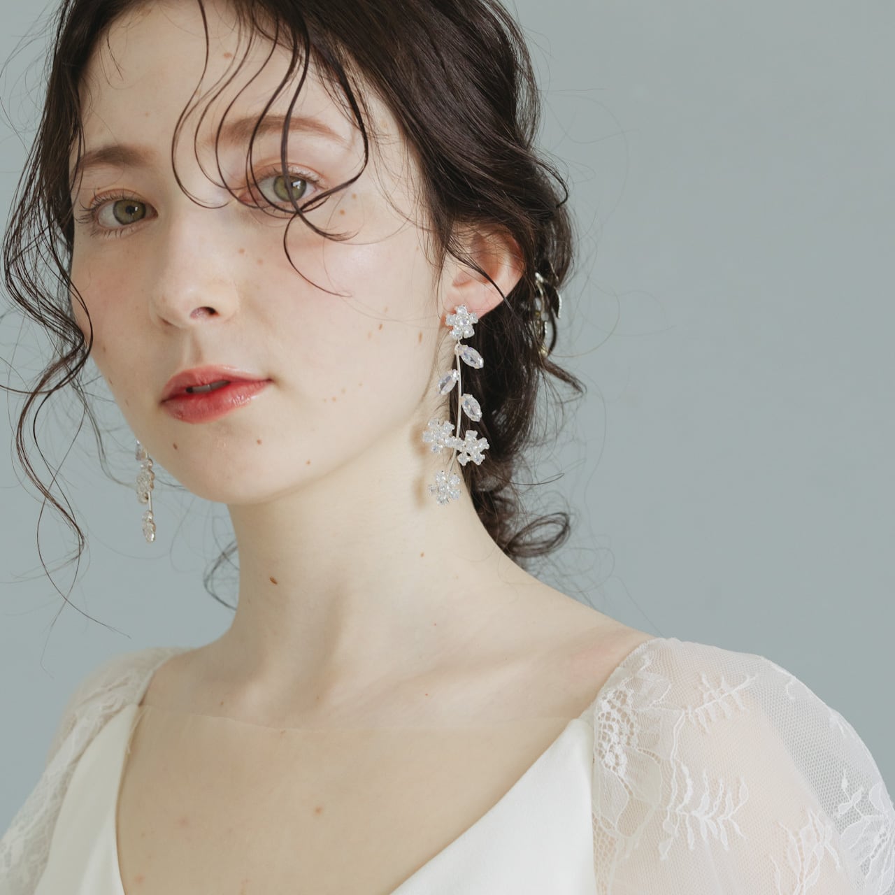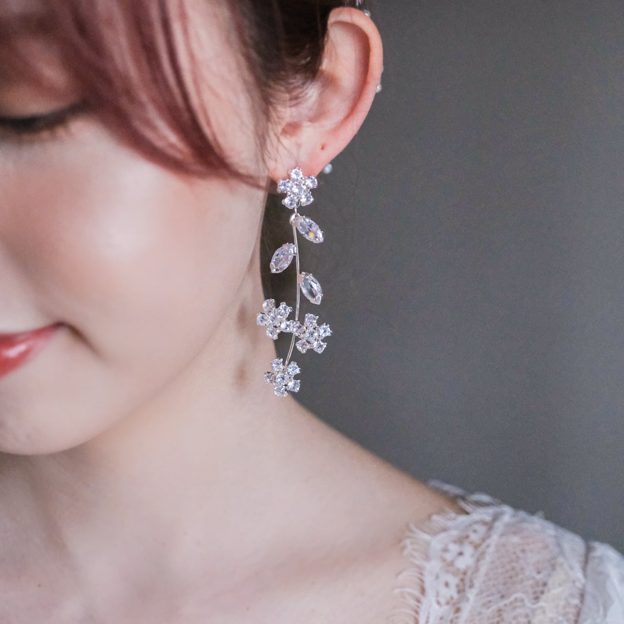 魅力的で華やかな花と葉のデザインが特徴のブライダルピアスです。