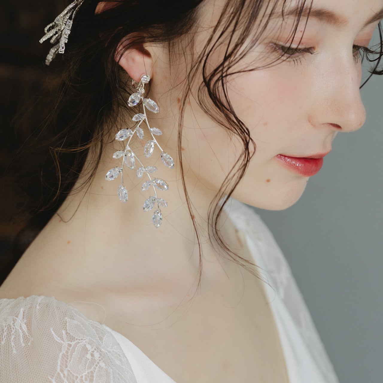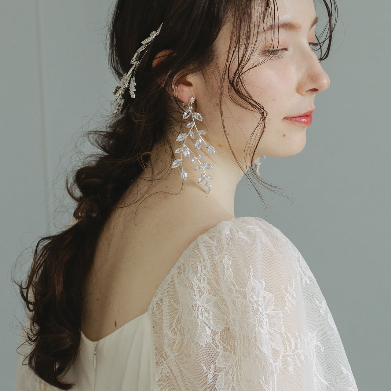 w3-pe119【ピアス/イヤリング】ブライダル ジルコニア リーフ シルバー