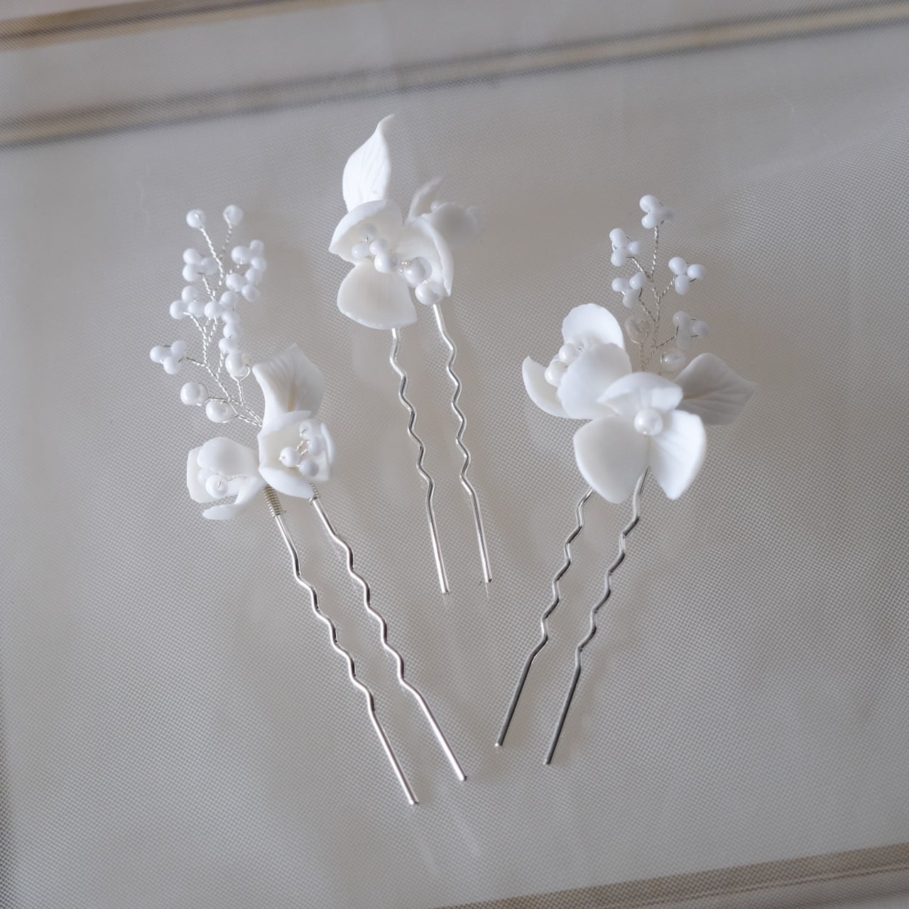 w25-hd133 (3点セット) ブライダルヘッドドレス 白い花 ピン シルバー