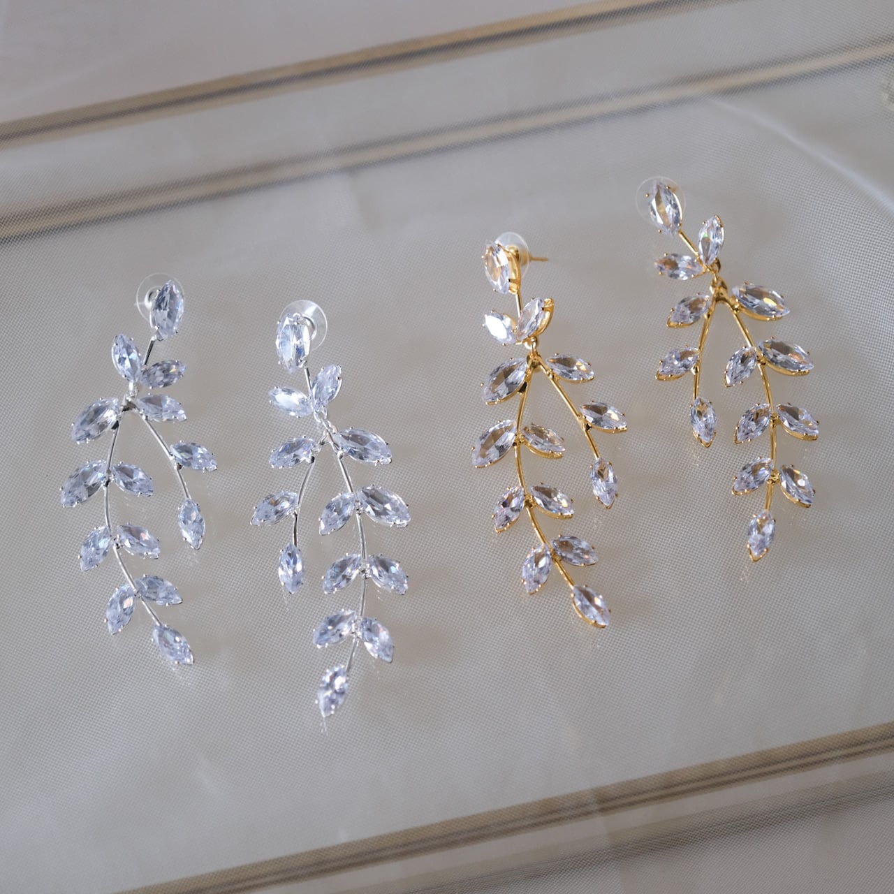 w7-pi73【ピアス】ブライダル ジルコニア リーフ シルバー