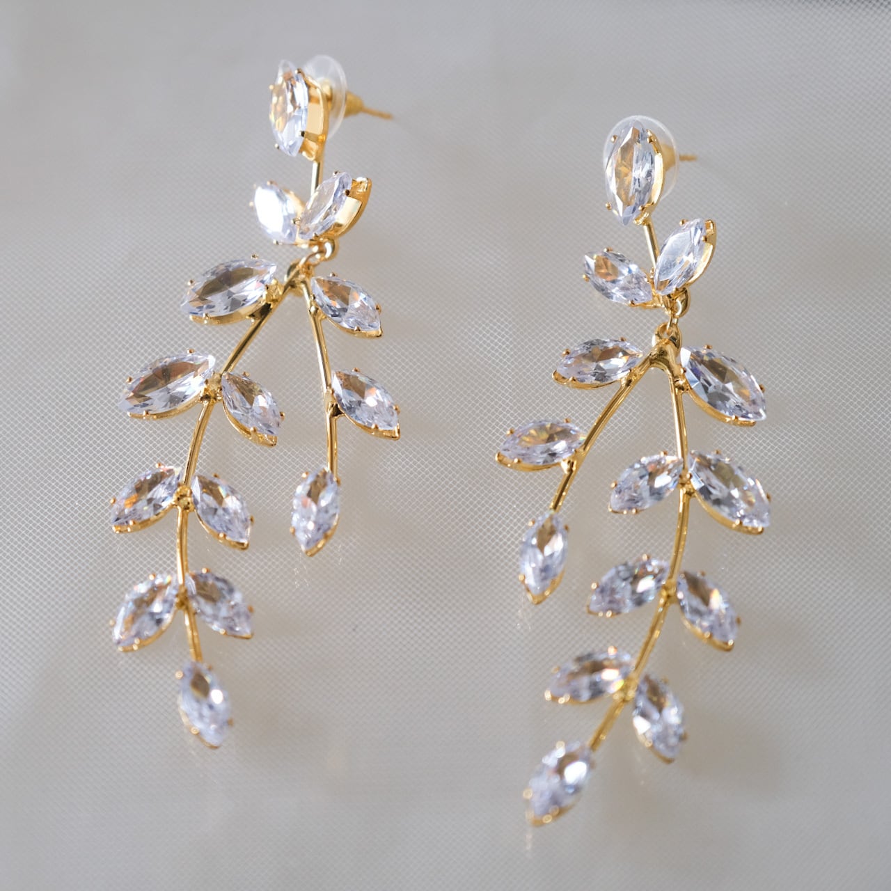 w8-pi74【ピアス】ブライダル ジルコニア リーフ ゴールド