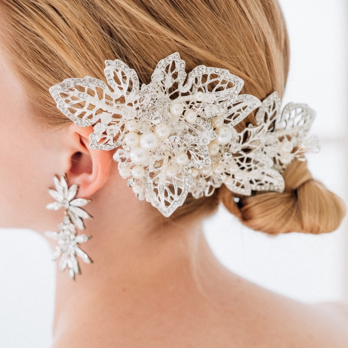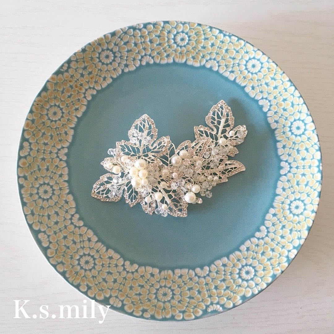 a2-hd10 ブライダルヘッドドレス ビジュー パール リーフ ボンネ