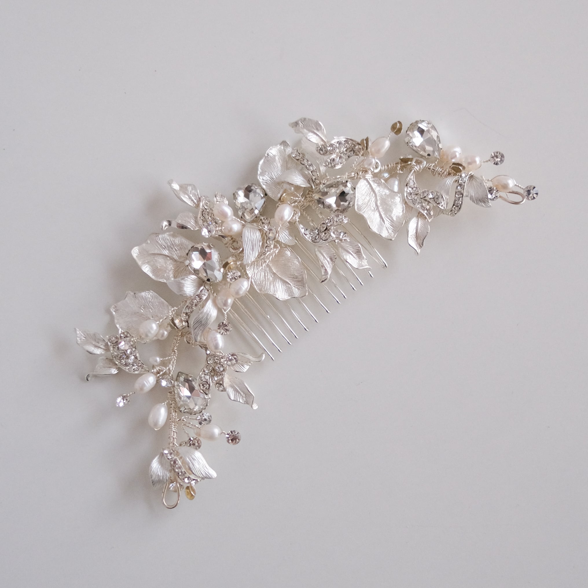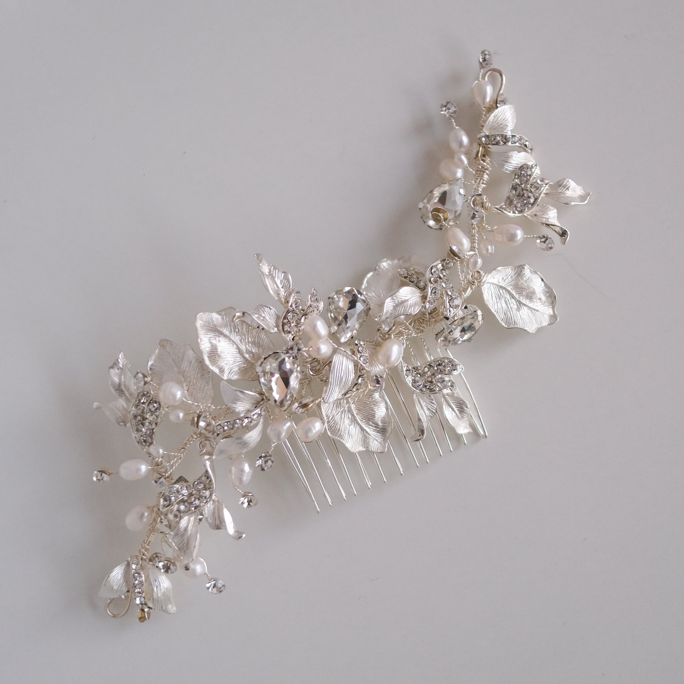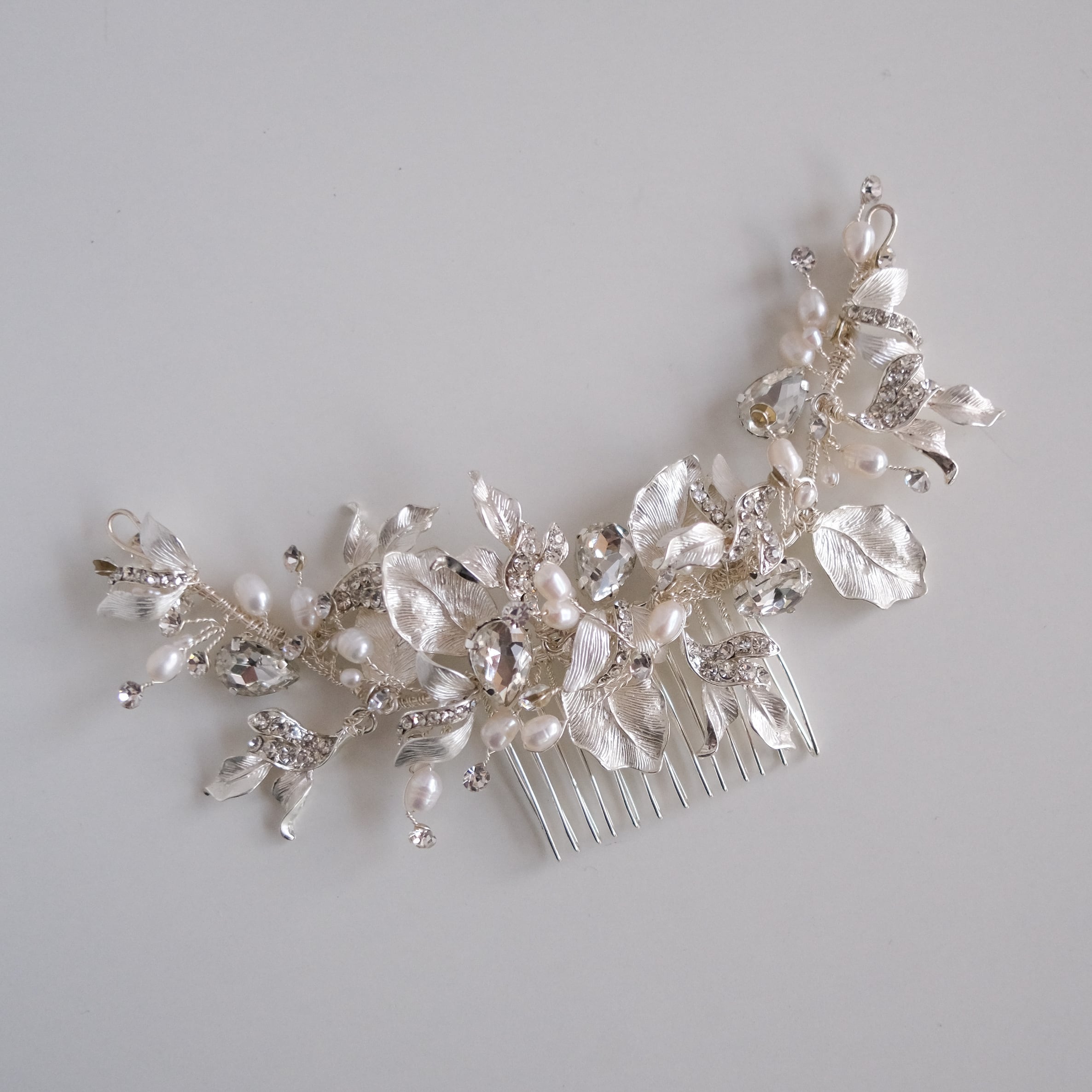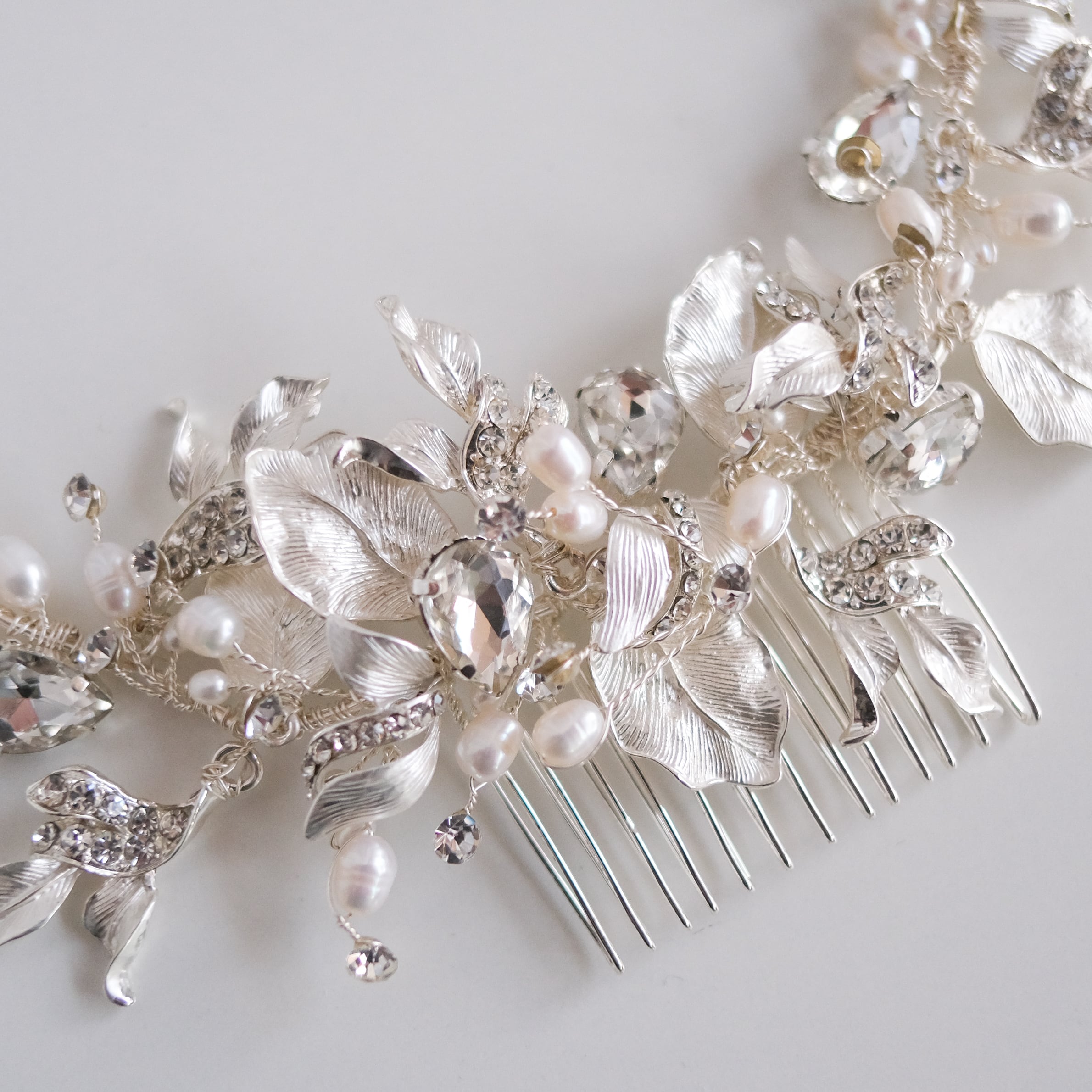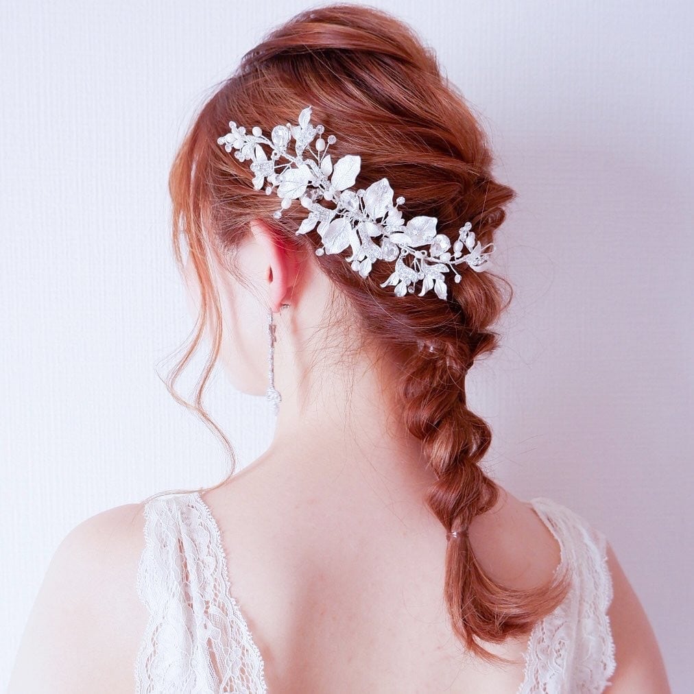 ・ビジュー、パール、リーフモチーフパーツ使った可愛いヘッドコーム!